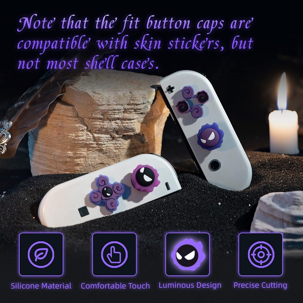 WISHAVEN 크로스 D-Pad 버튼 캡 야광 실리콘 엄지 그립 세트 ABXY 버튼 스티커 조이스틱 커버 캡 닌텐도