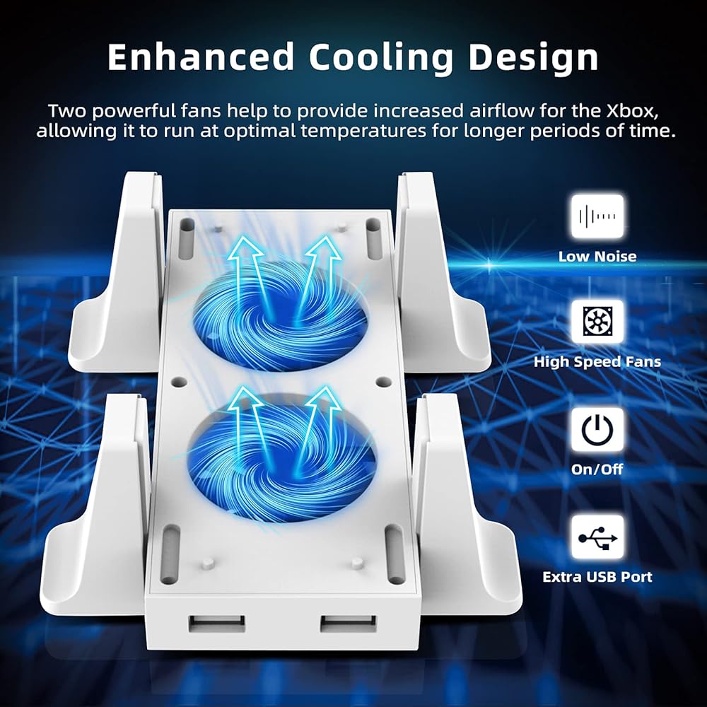 Xbox Series S 콘솔용 냉각 팬이 있는 NexiGo 수직 스탠드 3단계 조절식 팬 타입-C 전원 입력 USB 충전 및