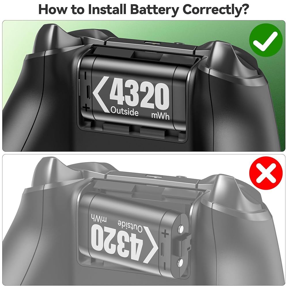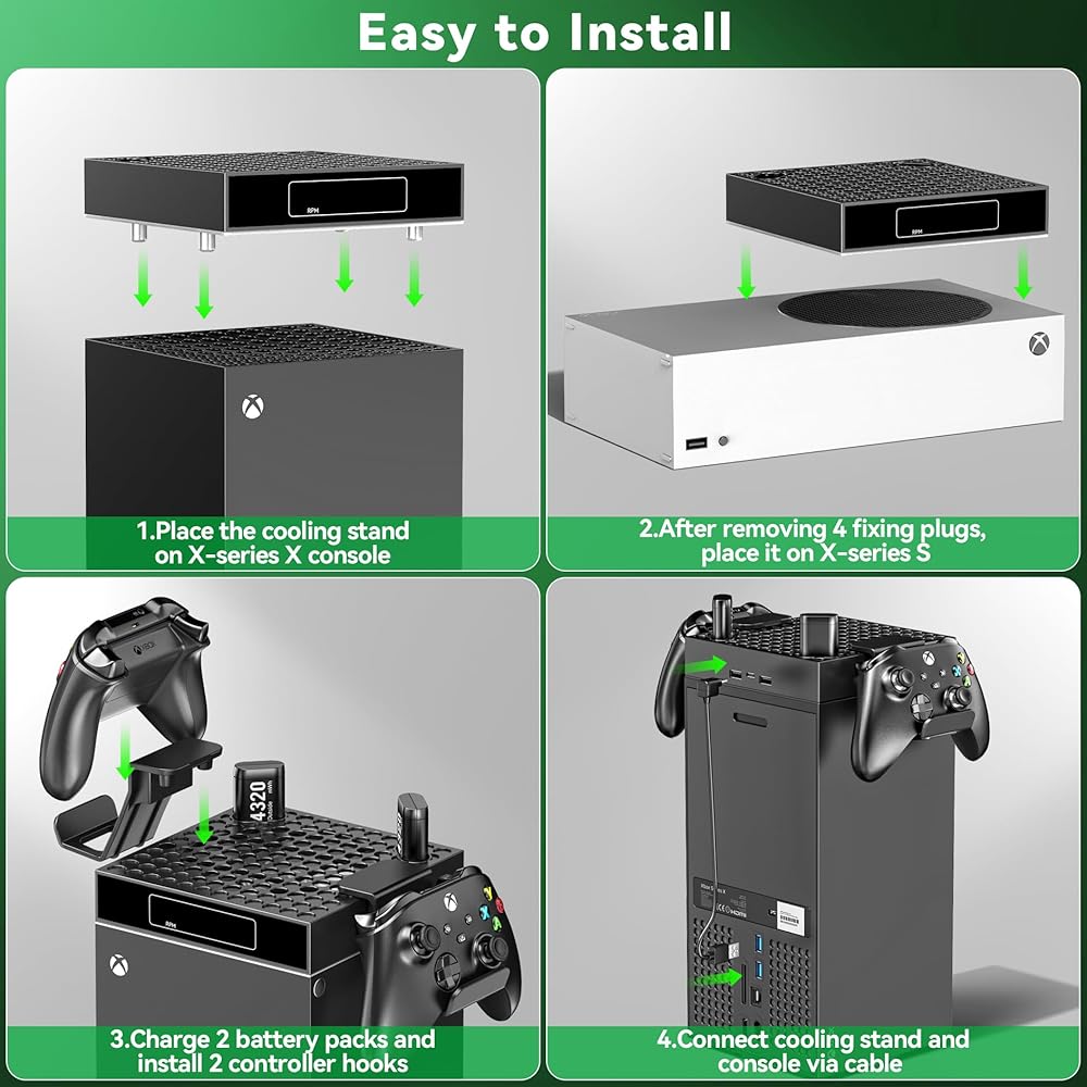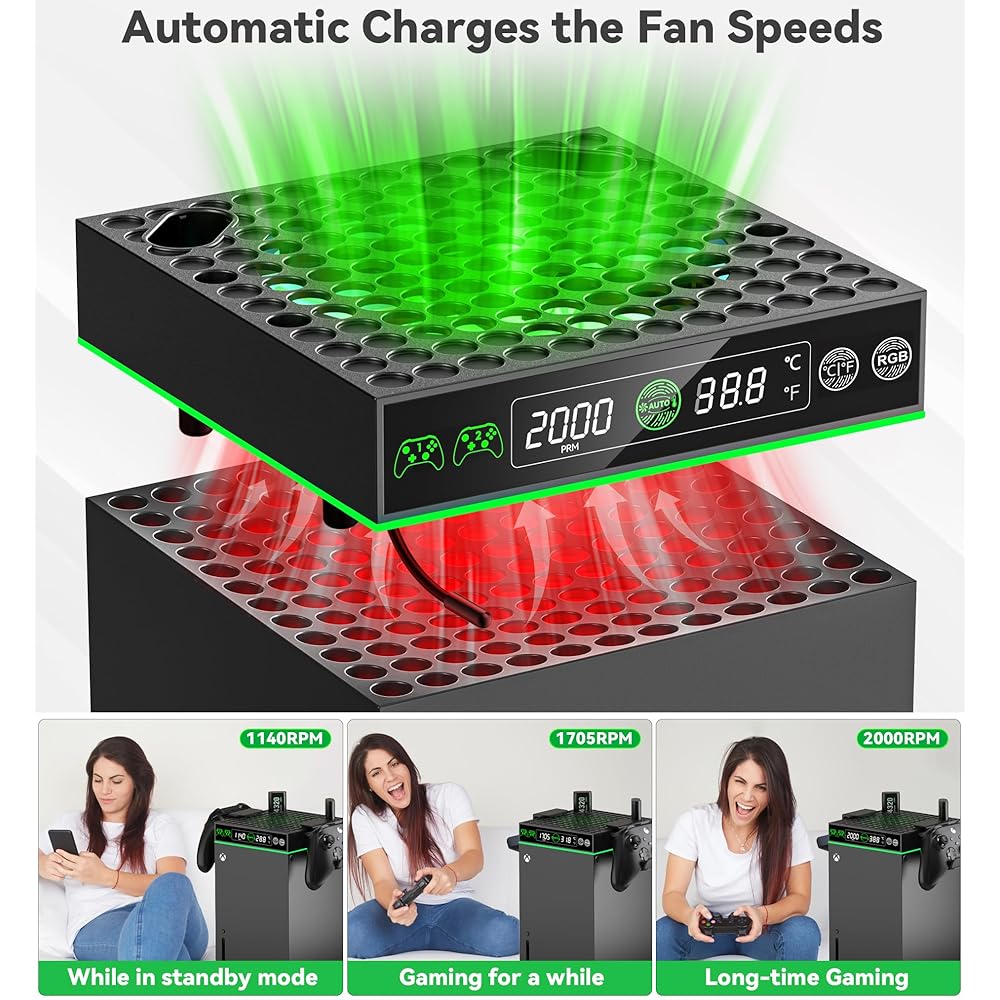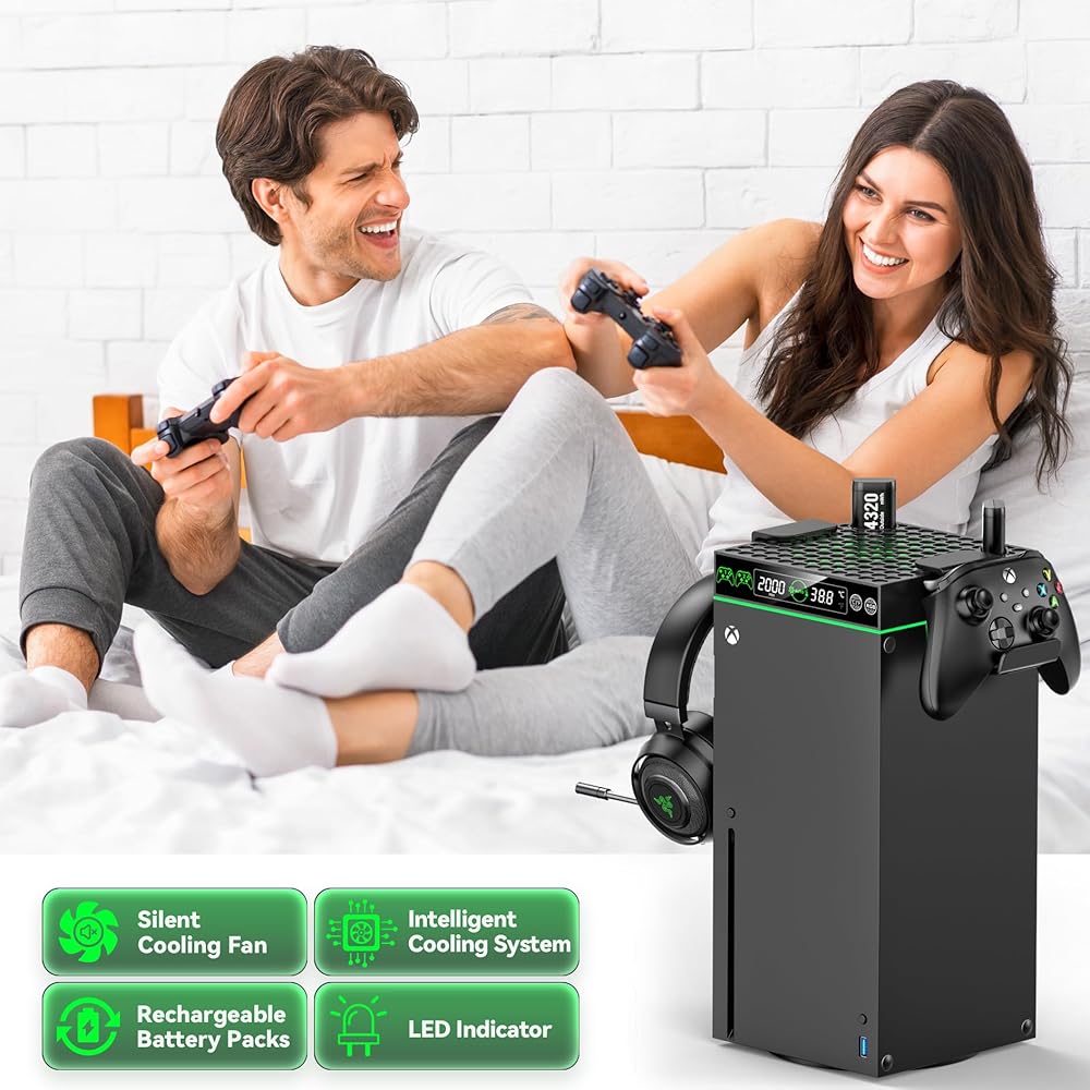 4320mWh 충전식 배터리 2팩이 장착된 Xbox Series X/S 콘솔용 LVVIL 자동 냉각 팬 팬 쿨러 컨트롤러 및