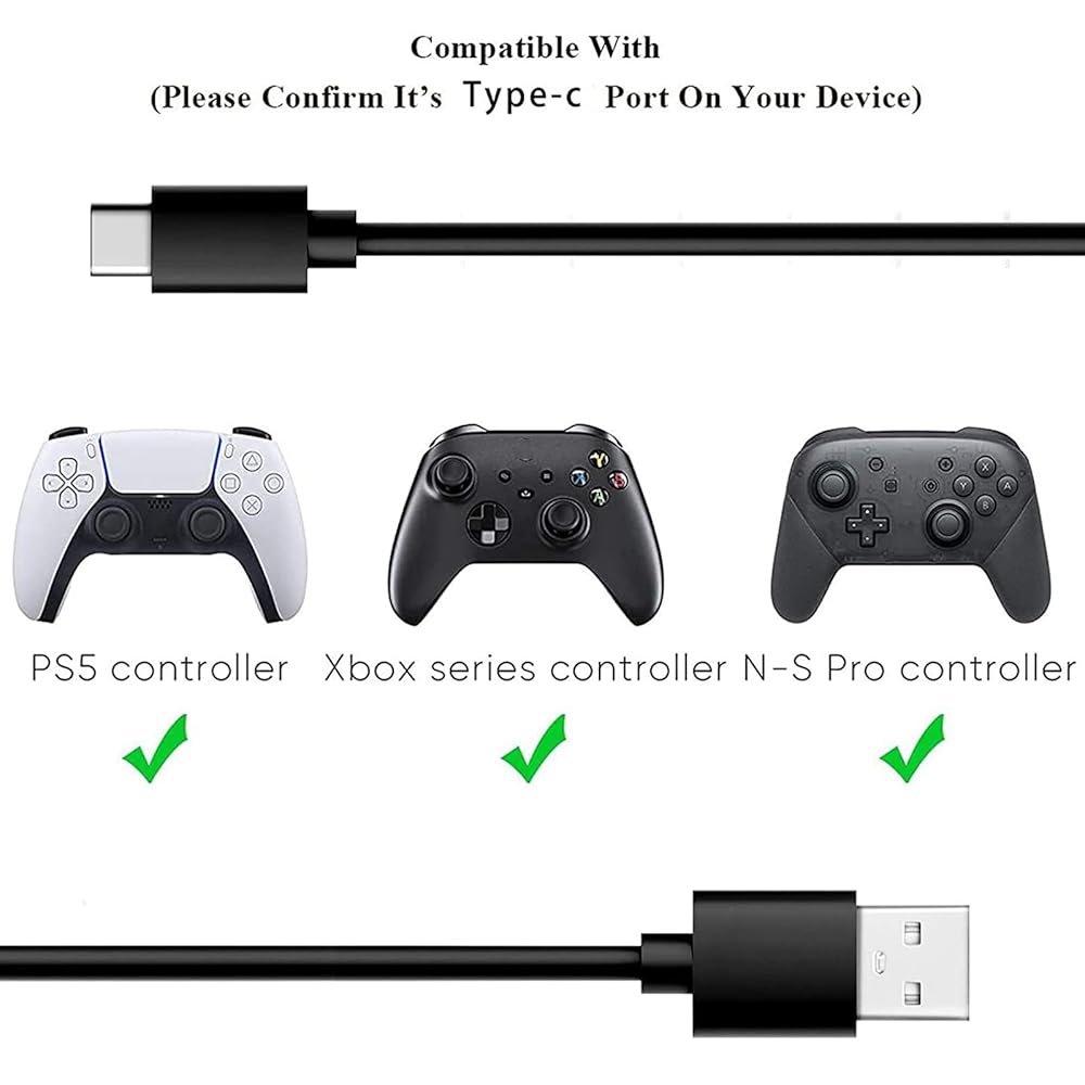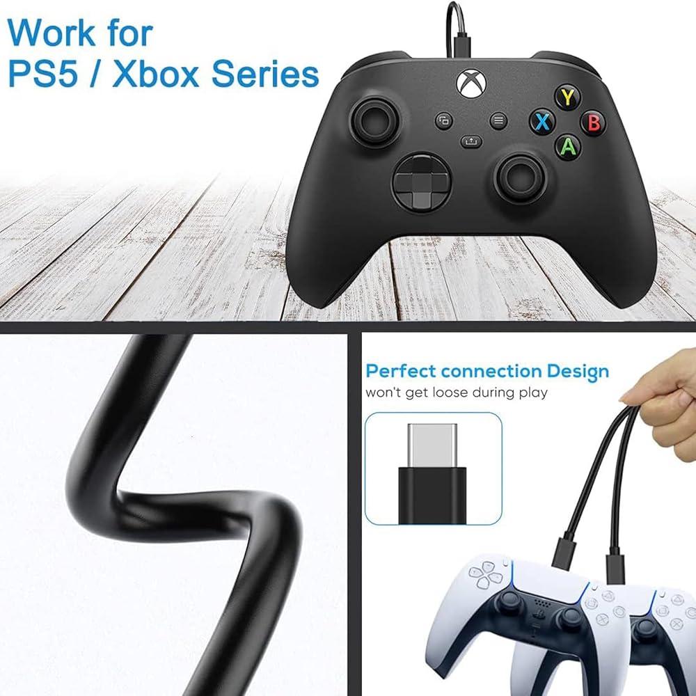 Xbox 시리즈 S/X 및 Xbox 엘리트 컨트롤러 시리즈 2용 충전 케이블 USB C PS5 컨트롤러 와이어 PS5 듀얼