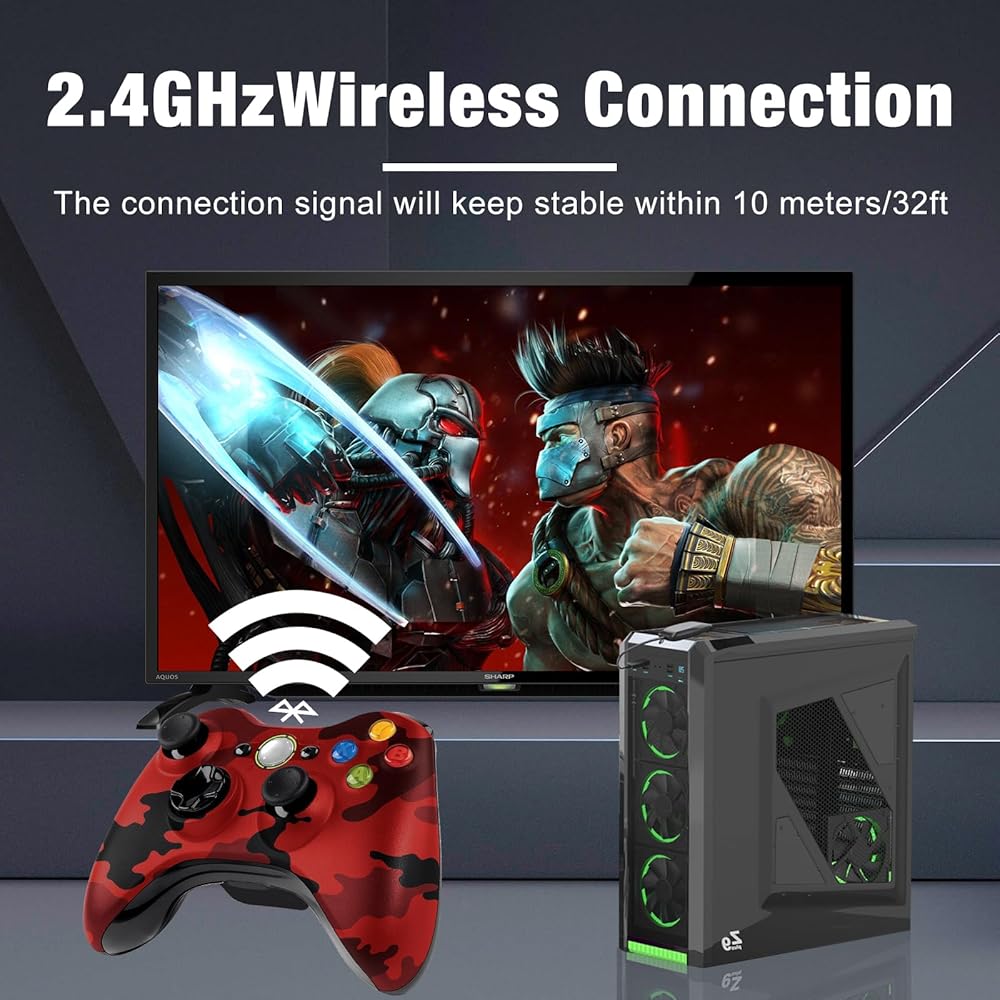 Xbox 360용 BUERTT 무선 컨트롤러 Xbox 360 및 슬림 콘솔용 2.4GHz 게임 조이스틱 컨트롤러 게임패드 및 PC