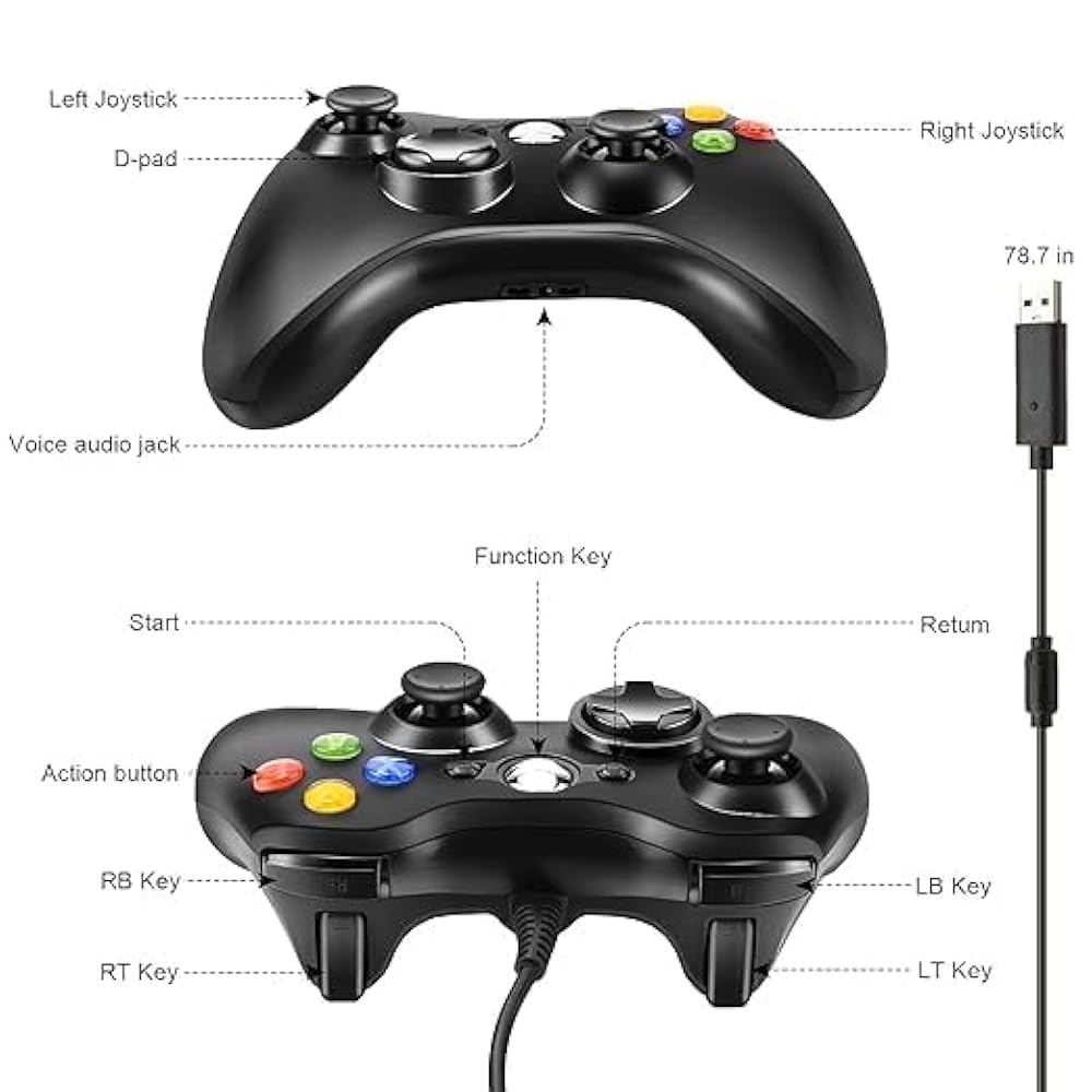 360용 Gezimetie 유선 컨트롤러 360용 PC 게임 컨트롤러 360/360 슬림 및 PC Windows 7 8 10 11과 호환되