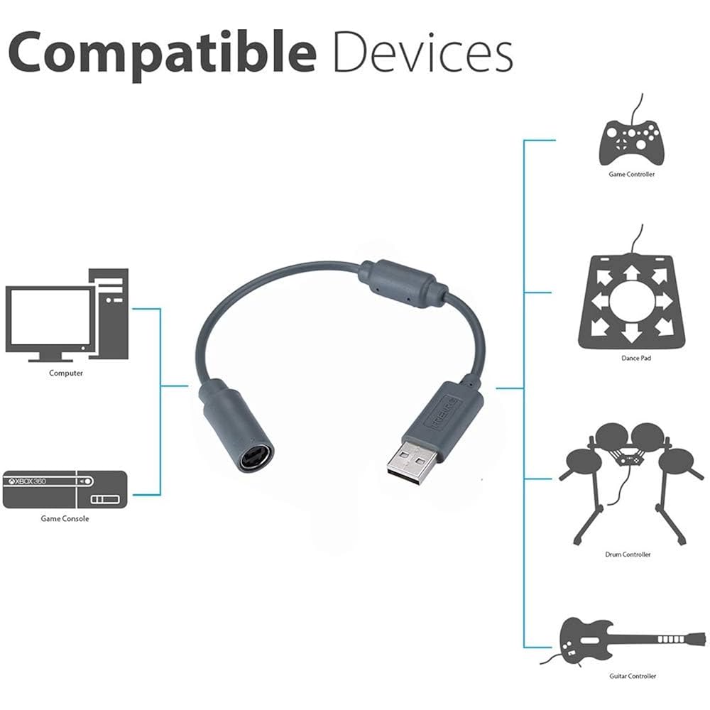Xbox 360과 호환되는 게이머 기어 유선 컨트롤러 분리 케이블 - USB 어댑터 리드 - 교체용 USB 케이블로
