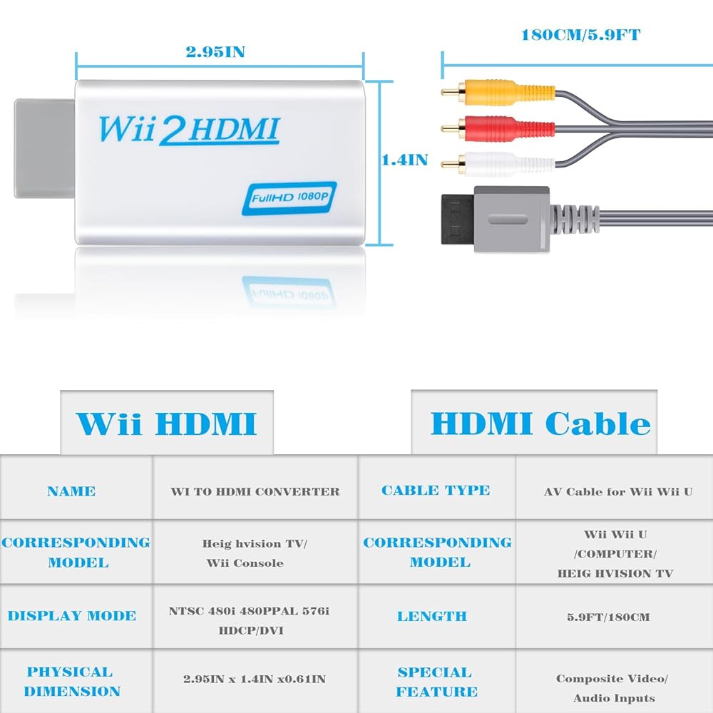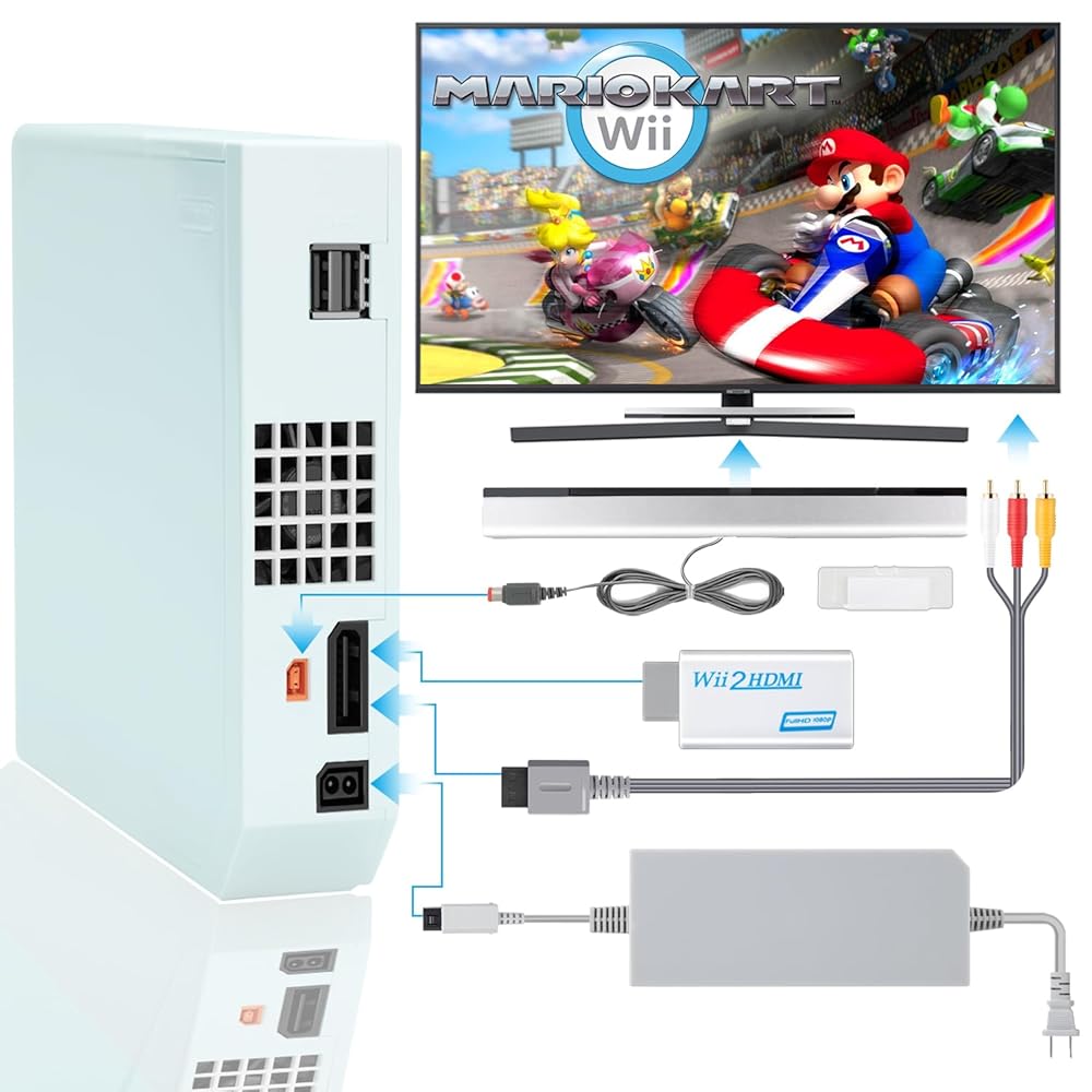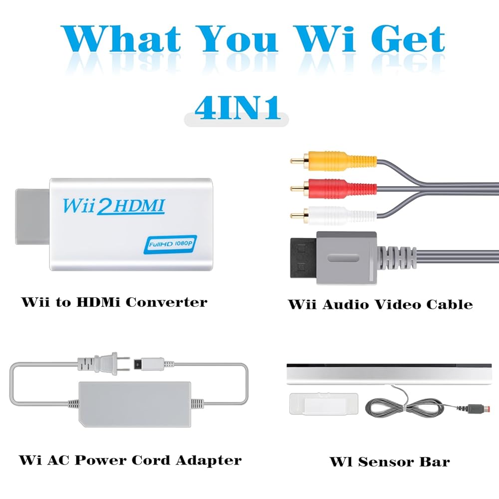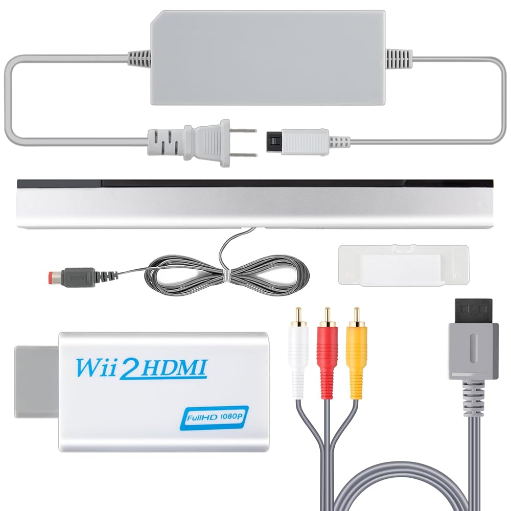 롱롱진 얼티밋 4 in 1 Wii 코드 어댑터 키트 - Wii 전원 코드 센서 바 HDMI 컨버터 및 AV 케이블로 게임