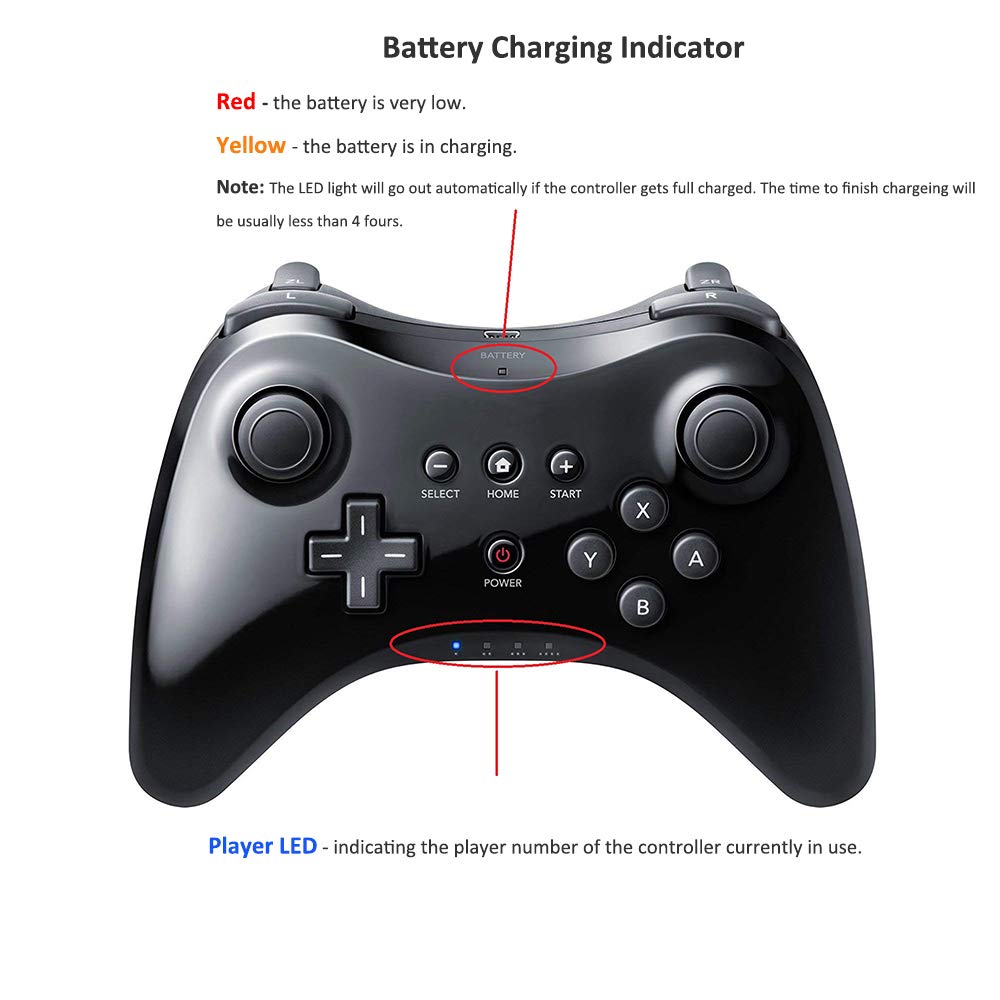 CuleedTec 블랙 클래식 무선 프로 컨트롤러 게임 컨트롤러 게임패드 조이패드 리모컨 Wii U용
