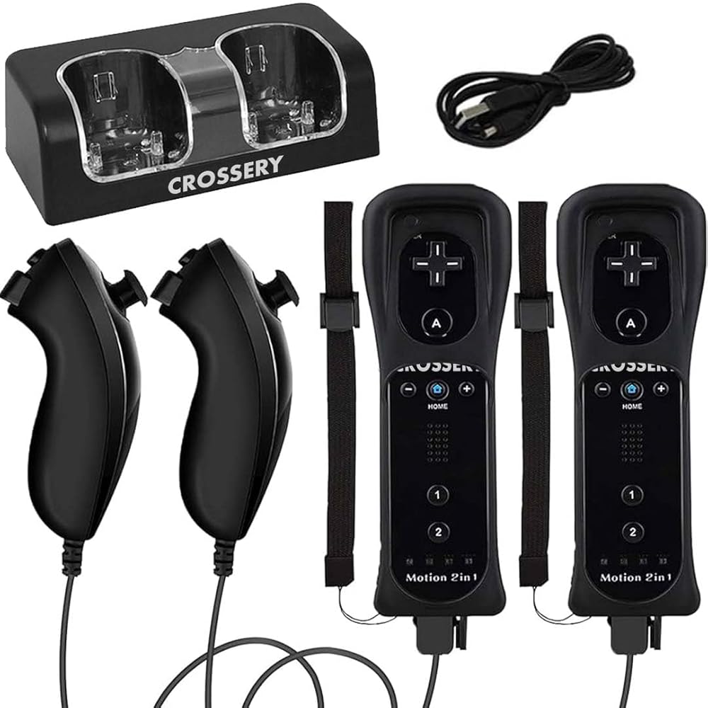 충전 도크가 있는 Wii 리모컨 및 넌척 컨트롤러 번들 - 2팩 모션 플러스 리모컨 2개의 넌척 1개의 충전소