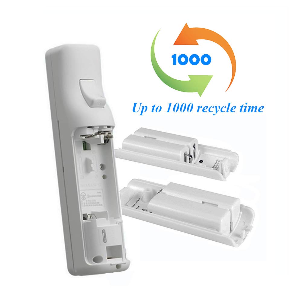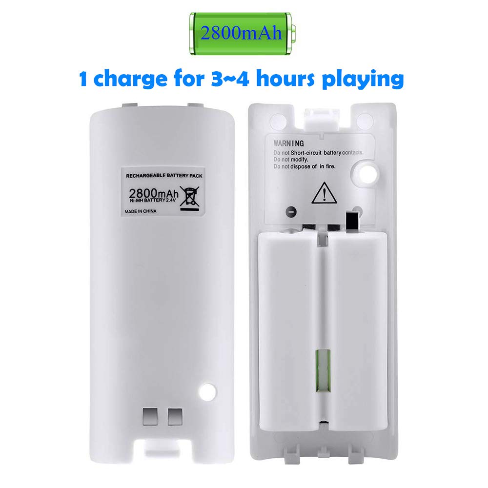 Wii 컨트롤러용 충전식 YZGame Wii 배터리 팩 Wii U용 충전식 배터리 2팩 WiiU 리모컨 화이트용 교체 가능
