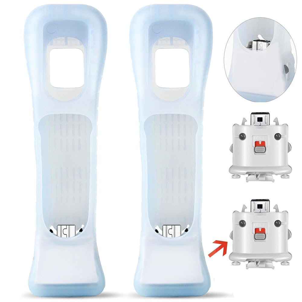 SogYupk Wii 모션 플러스 어댑터 세트 - 향상된 게임 경험을 위한 어댑터 2개와 실리콘 커버 2개 (흰색)