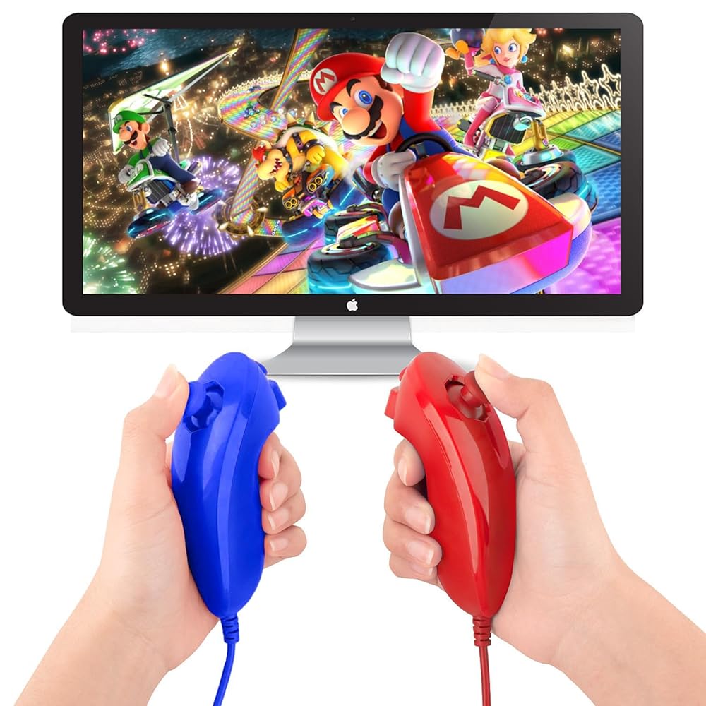 롱롱진 Wii 컨트롤러 4팩 Nunchucks Wii 리모컨 호환 Wii 콘솔 및 Wii U Wii Nunchuck 컨트롤러 교체 닌텐