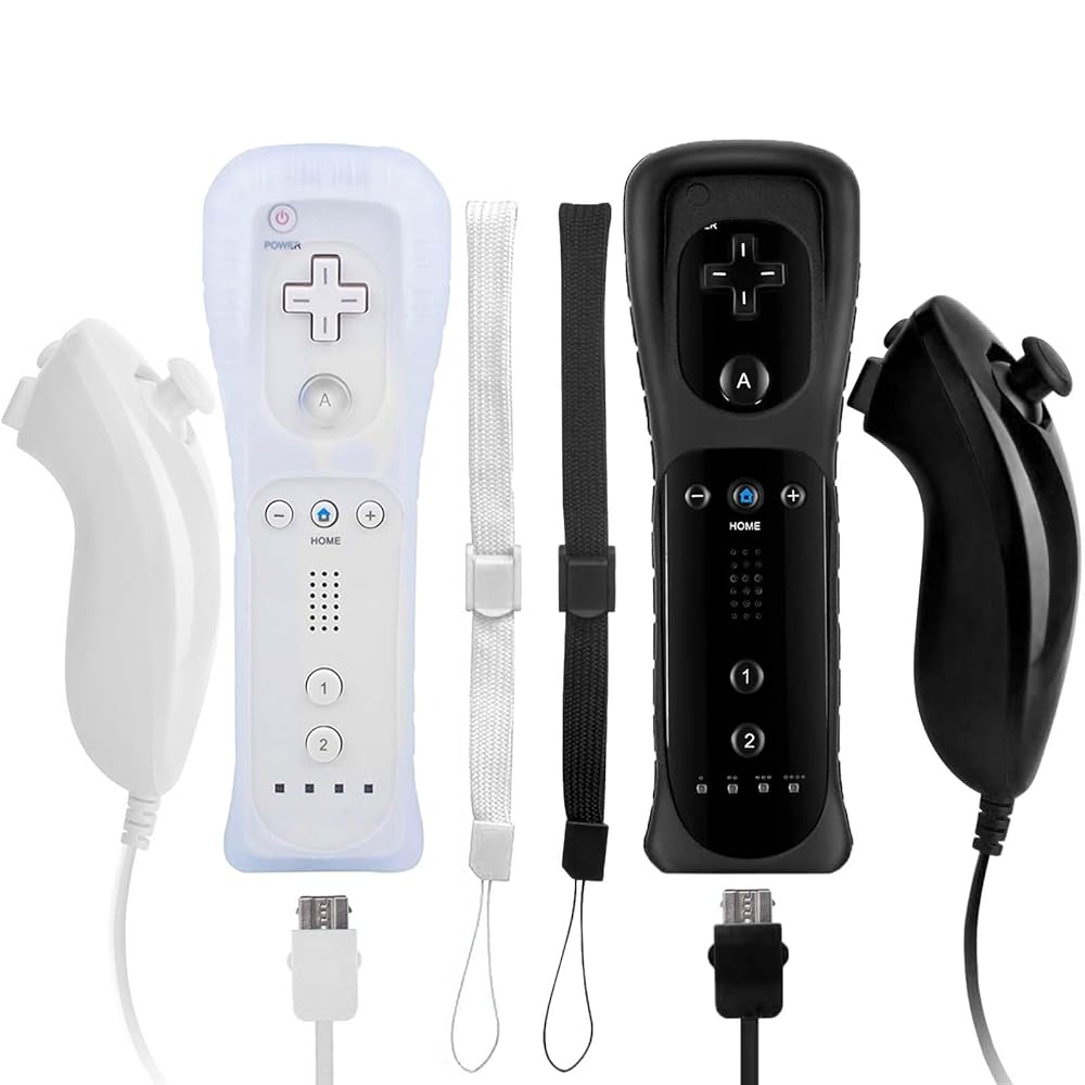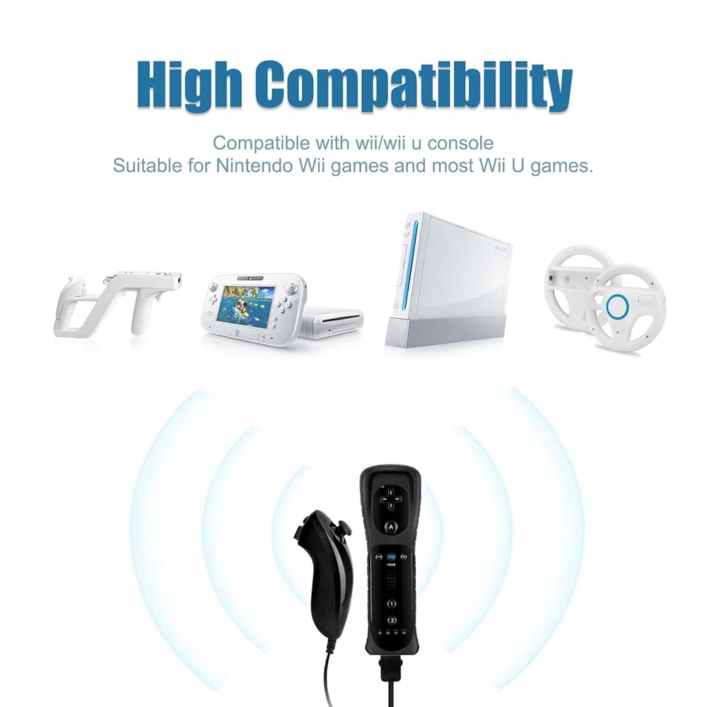 Wii 닌텐도용 Edorco 리모컨 Wii 리모컨 Wii 및 Wii U 콘솔용 넌척 조이스틱 (블랙 앤 화이트 2세트)