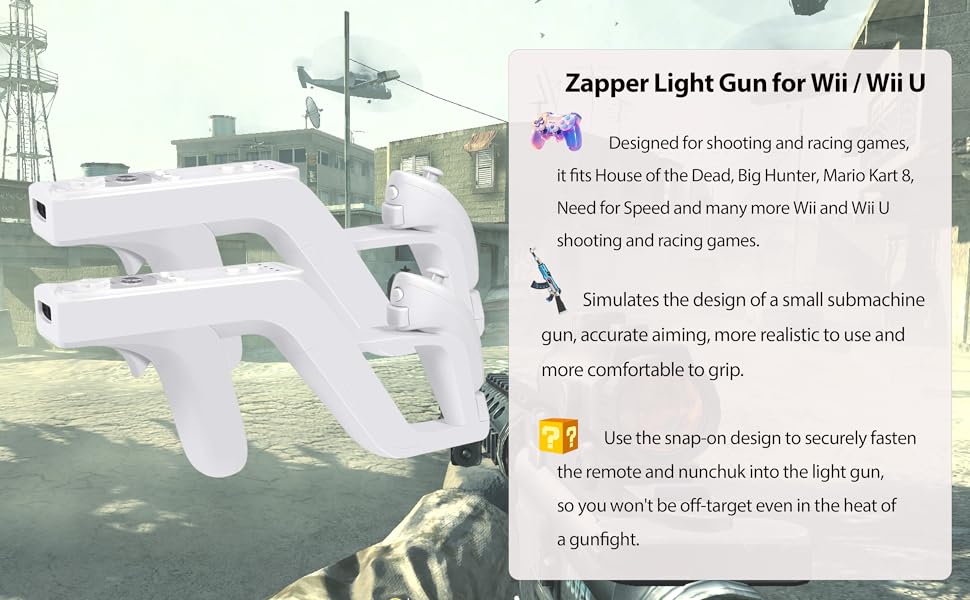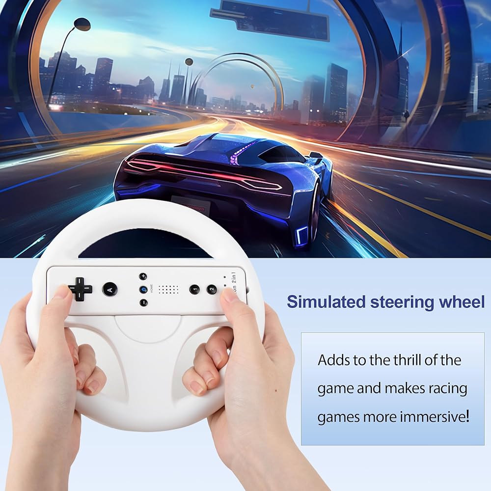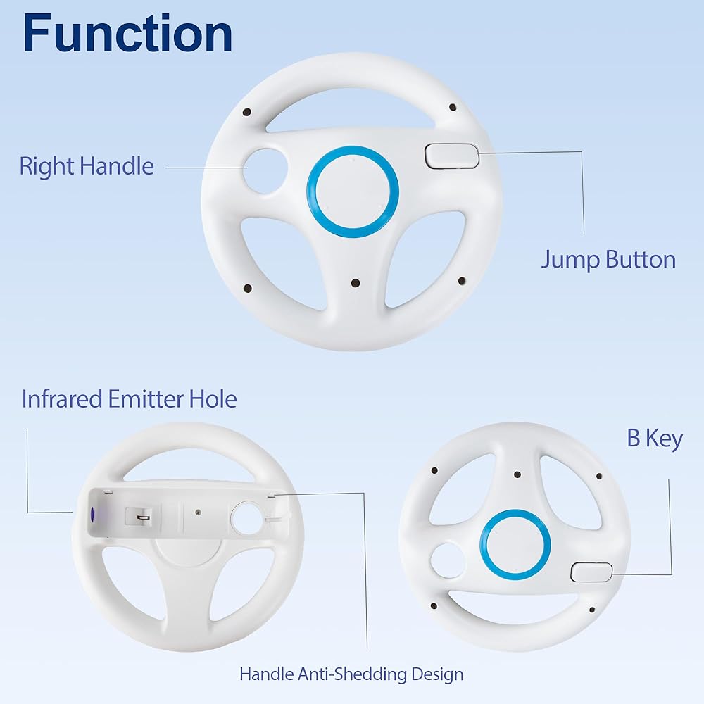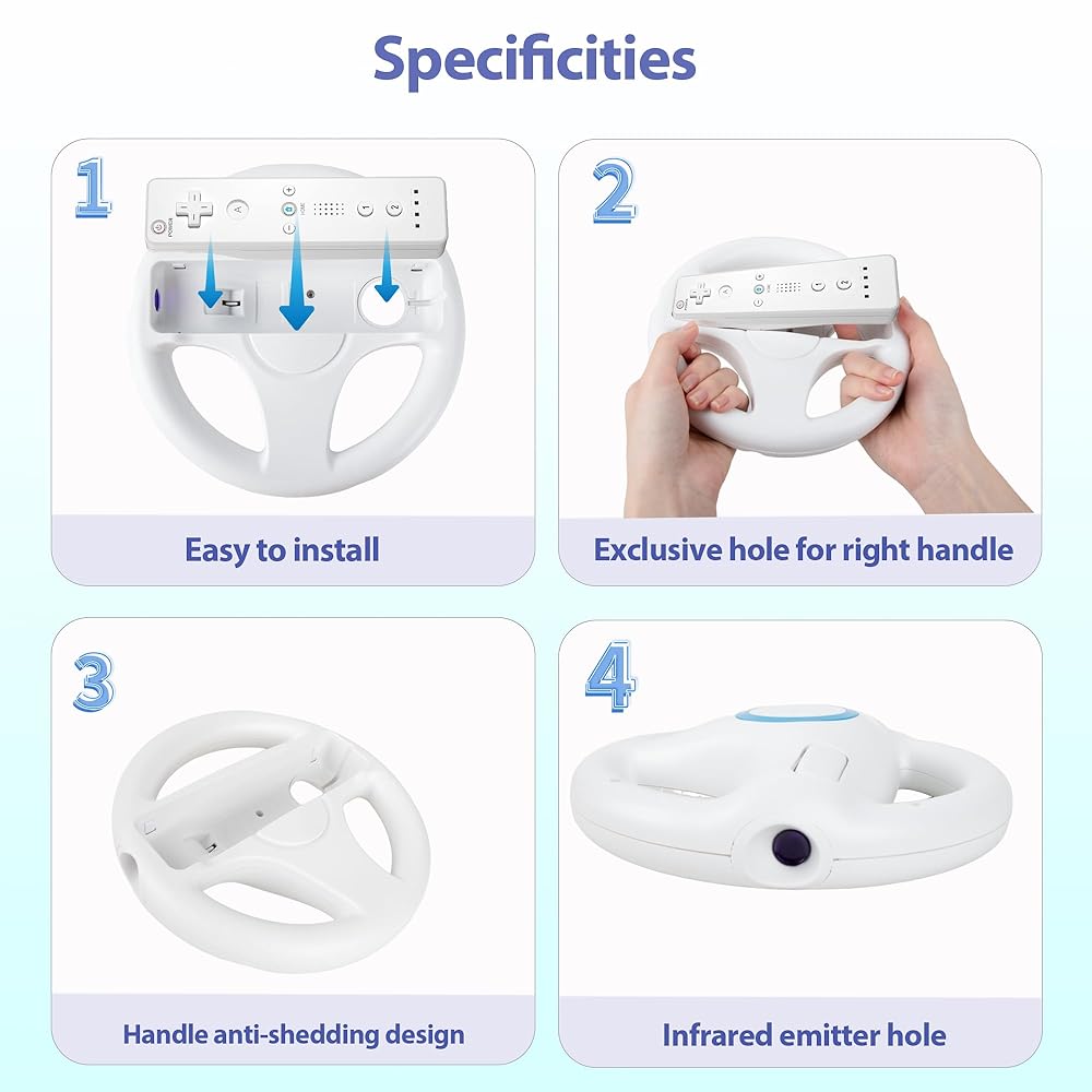 DTianSir 4팩 Wii 스티어링 휠 및 자퍼 건 세트 - Wii 및 Wii U 리모컨과 호환(스티어링 휠 2개 + 경건