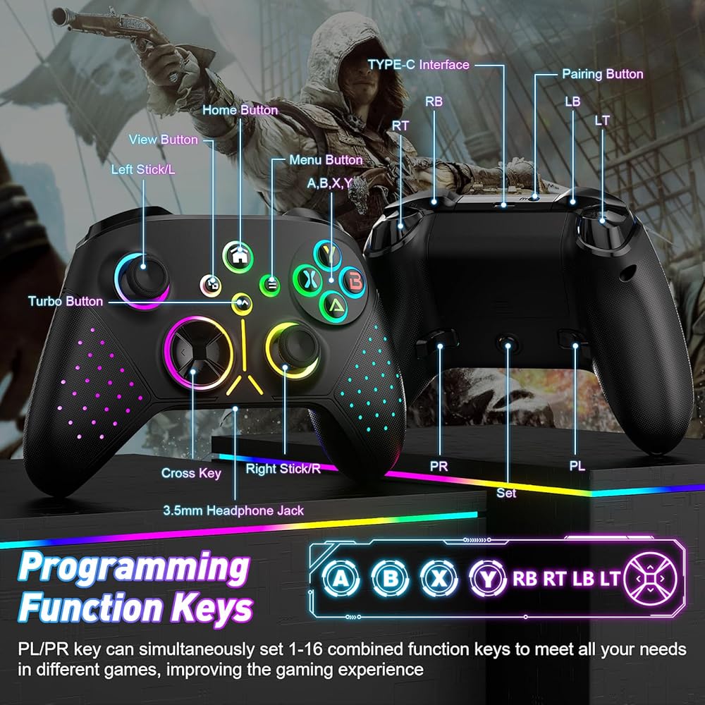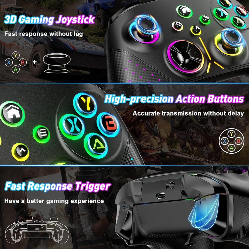 Xbox 컨트롤러용 Nonbliep Xbox Series X|S Xbox One X|S PC 듀얼 진동/3.5mm 오디오 잭/매크로/터보 블랙