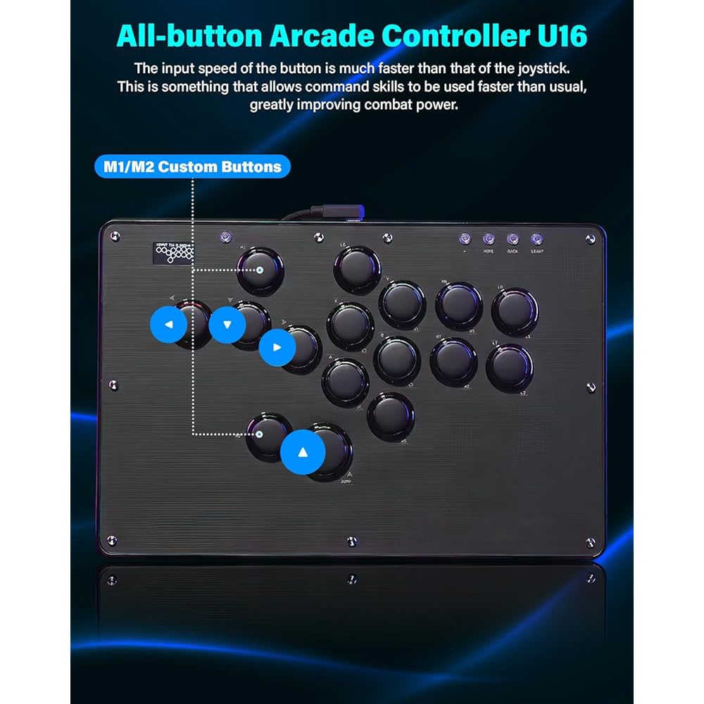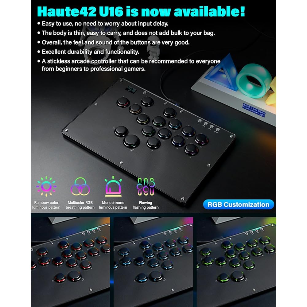 세하웨이 오트42 아케이드 스틱 U16 올버튼 게이머핑거 커스텀 RGB 및 터보 기능 PC/PS3/PS4/스위치/스팀