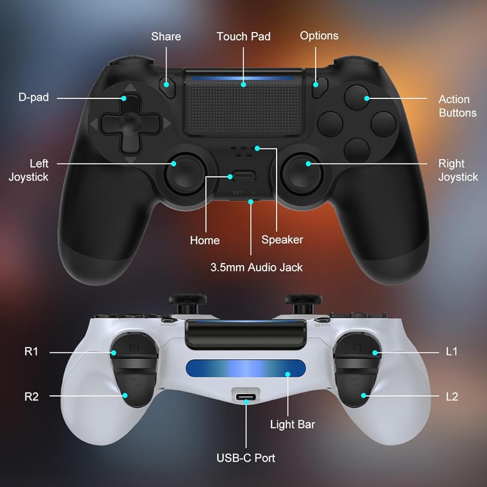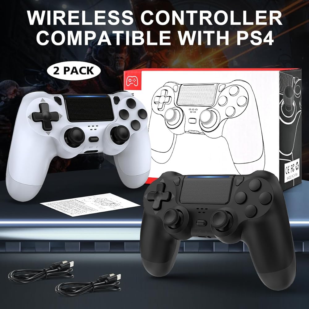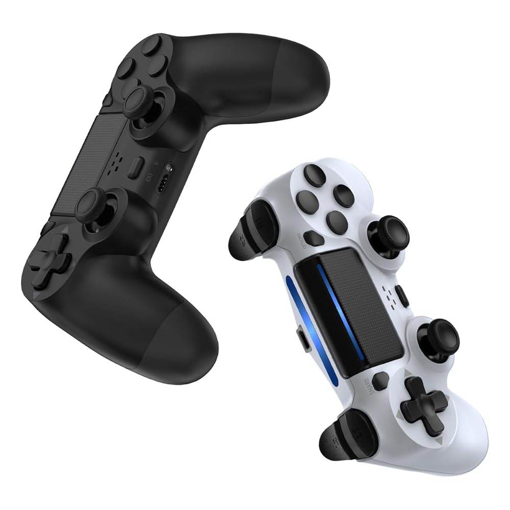 PS4/Pro/Slim과 호환되는 Wuthur 2팩 무선 컨트롤러 - 블랙 앤 화이트