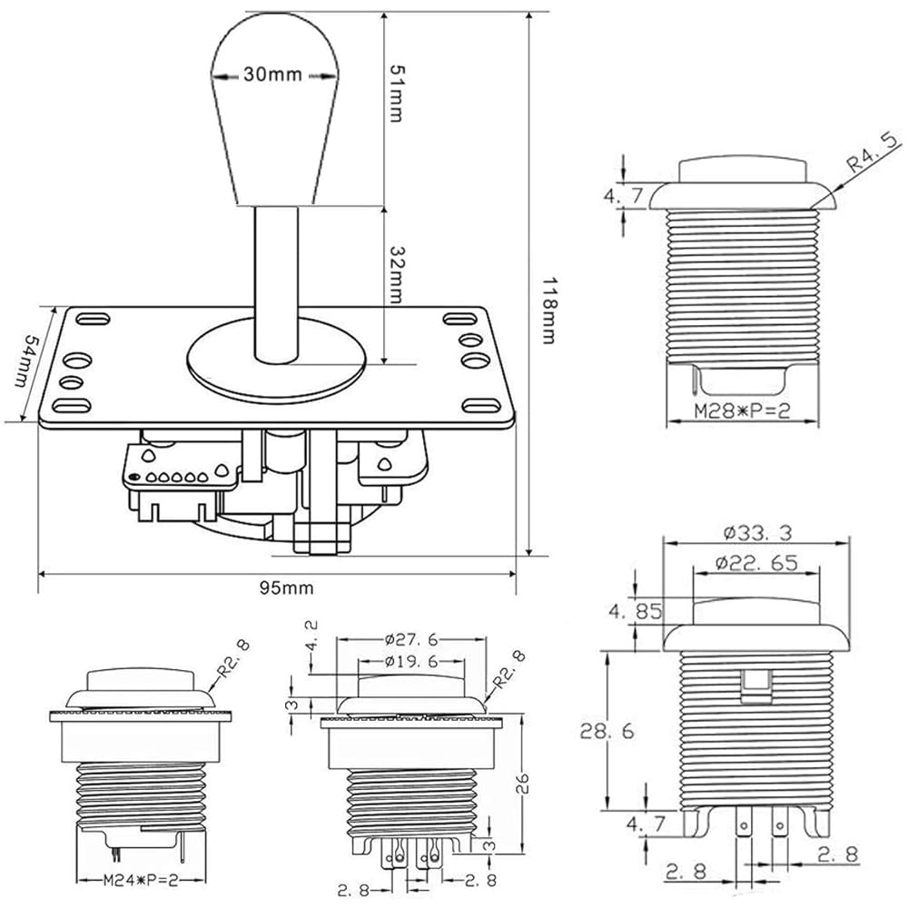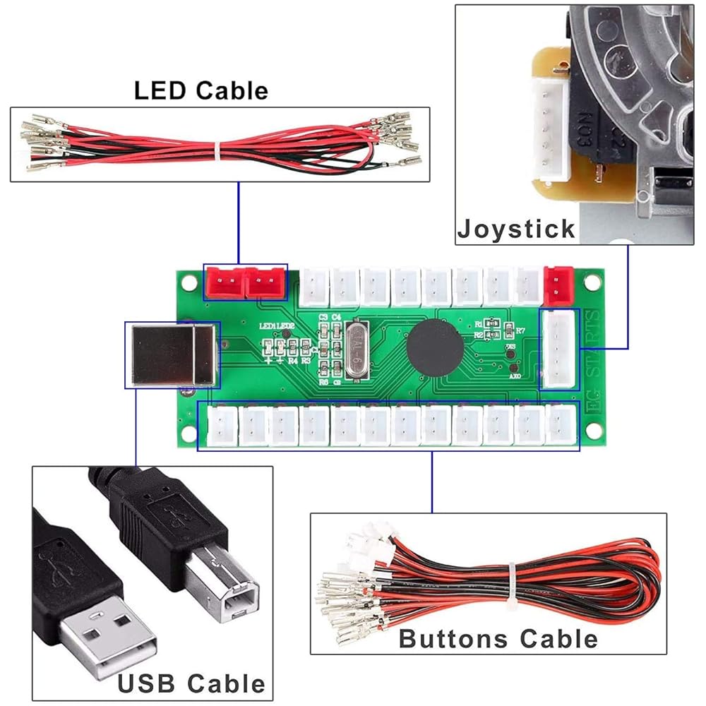 포시야 4인용 LED 아케이드 키트 타원 타원형 스타일 조이스틱 USB 인코더-PC 게임 DIY 컨트롤러 배트 조이