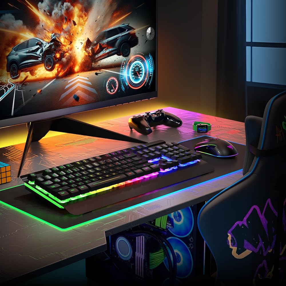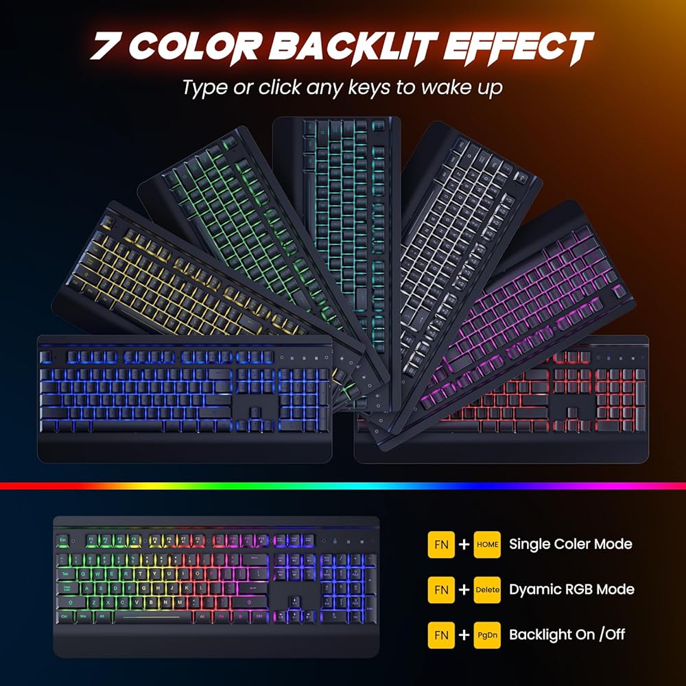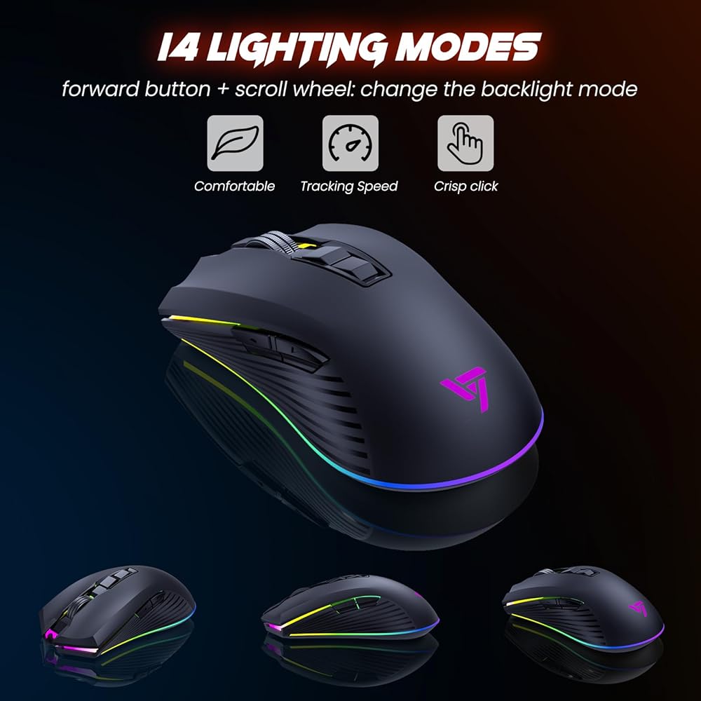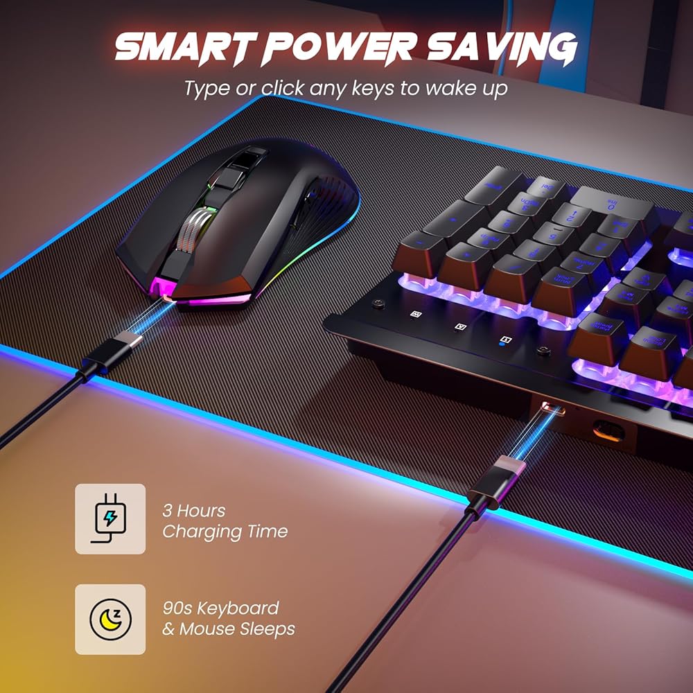 리소파이 무선 게이밍 키보드 및 마우스 콤보 메탈 패널 7가지 컬러 백라이트 충전식 3200mAh 배터리 손목
