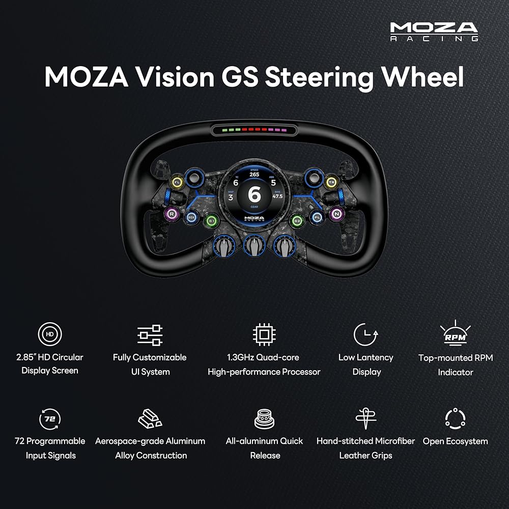 2.85인치 HD 원형 터치스크린 항공우주 등급 알루미늄 합금 구조 마이크로파이버 가죽 그립 게임 휠 호환