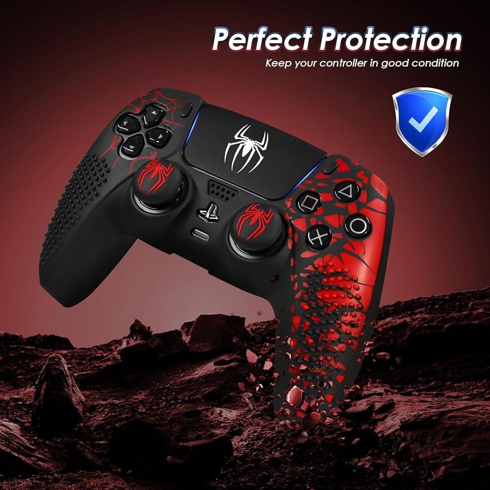 PS5 컨트롤러용 미끄럼 방지 스킨 PS5 액세서리용 보호 컨트롤러 커버 엄지 그립 캡이 있는 실리콘 플레이