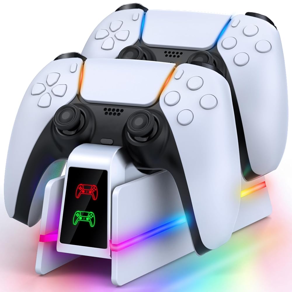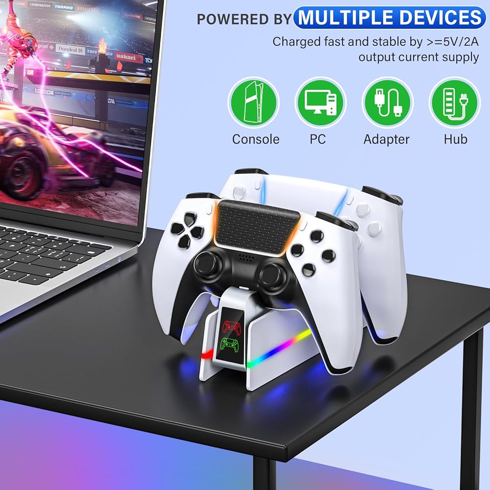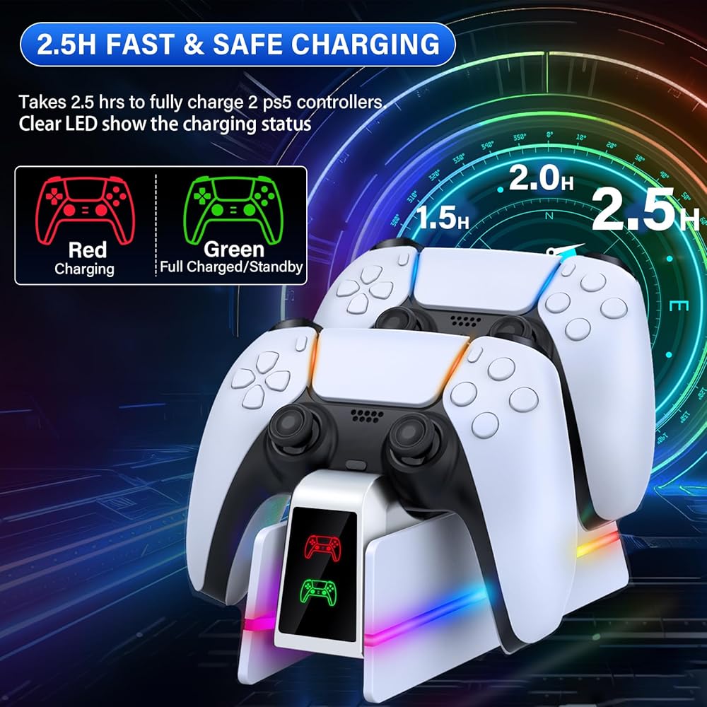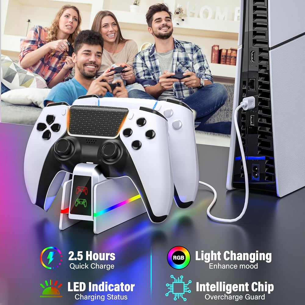 PS5-컨트롤러-충전 스테이션 - 9색 RGB LED 조명이 장착된 PlayStation 5 듀얼센스/엣지 컨트롤러용 충전