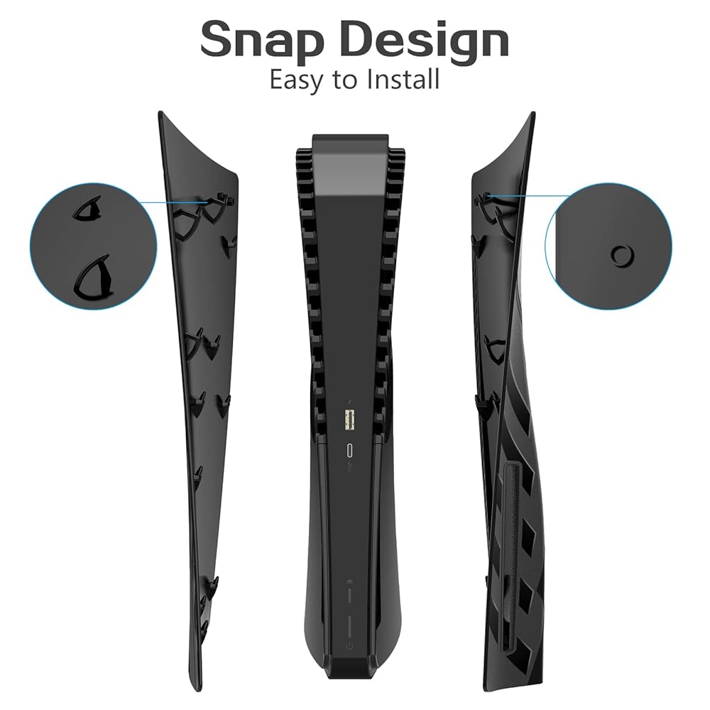 헤이스탑 PS5 플레이트: PS5 콘솔용 하드 충격 방지 커버 및 긁힘 방지 방진 페이스 플레이트 - 블랙