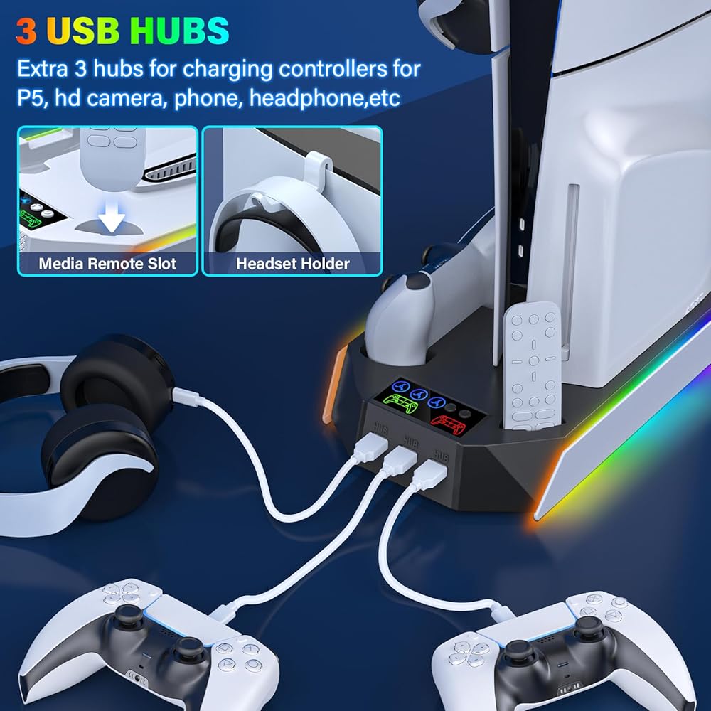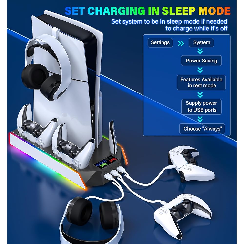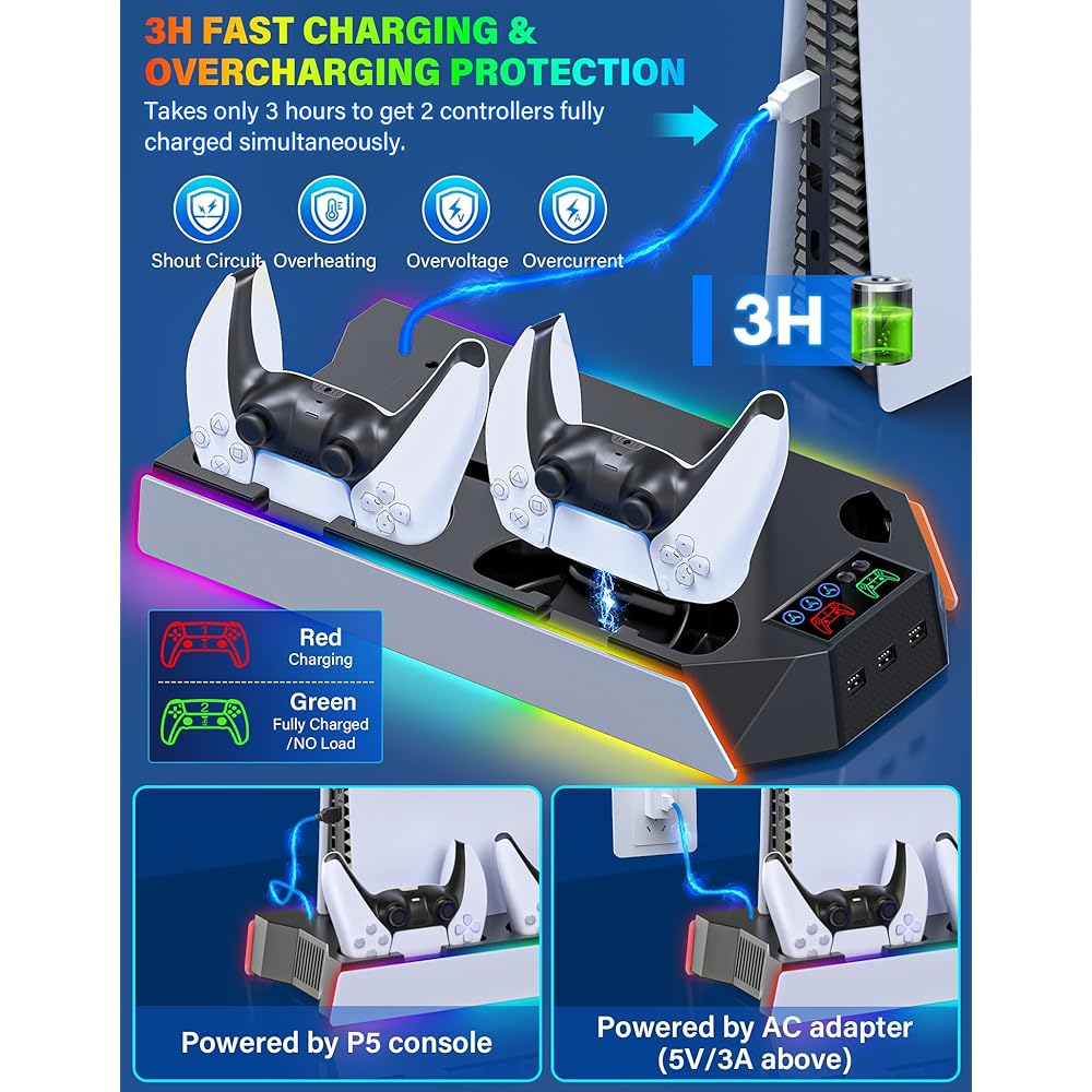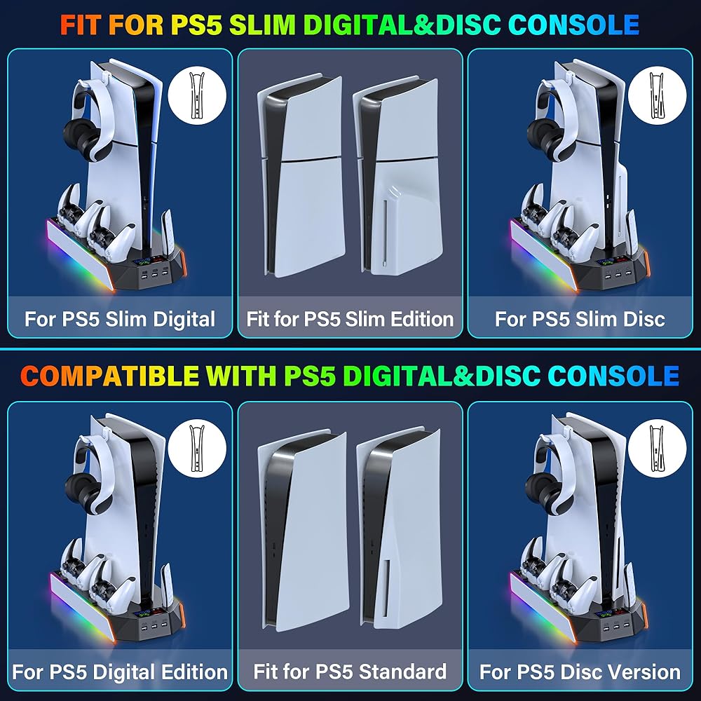 PS5/PS5-플레이스테이션 5 콘솔 디스크/디지털용 슬림 냉각 스테이션 컨트롤러 포함 충전 스테이션 PS5