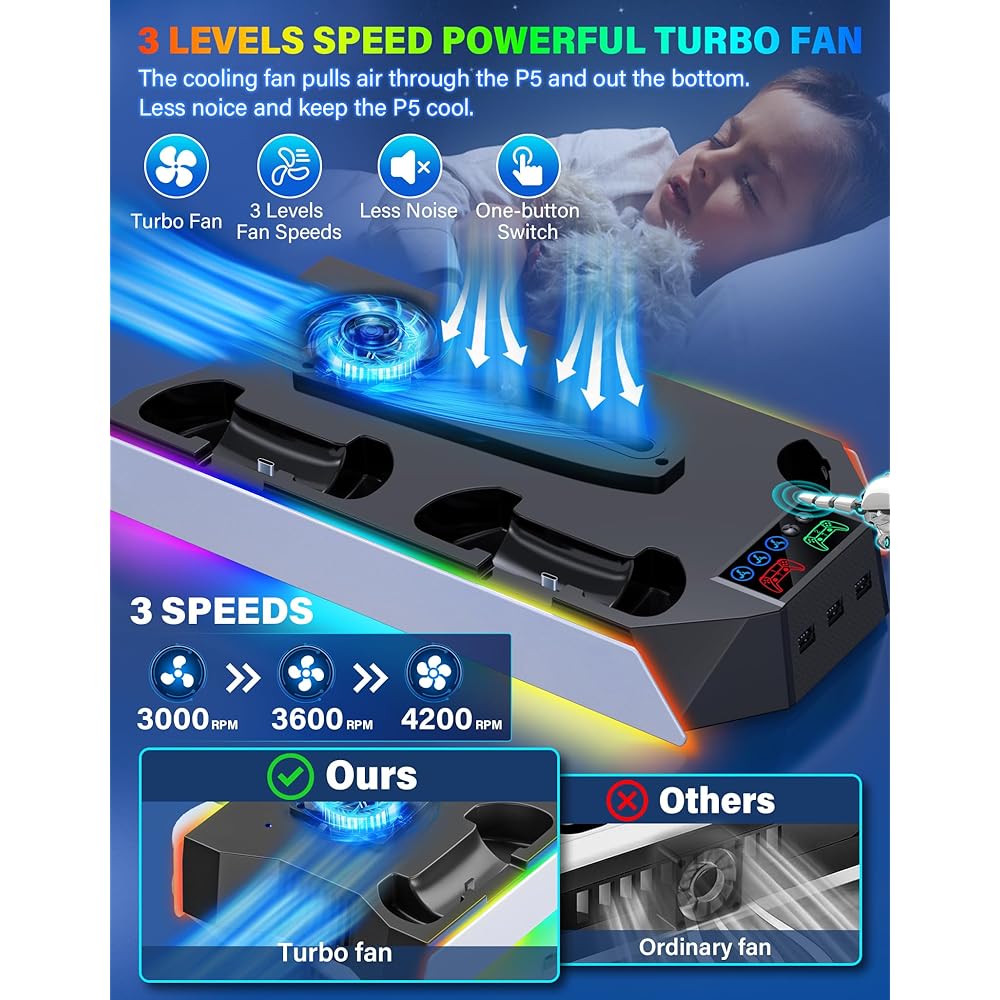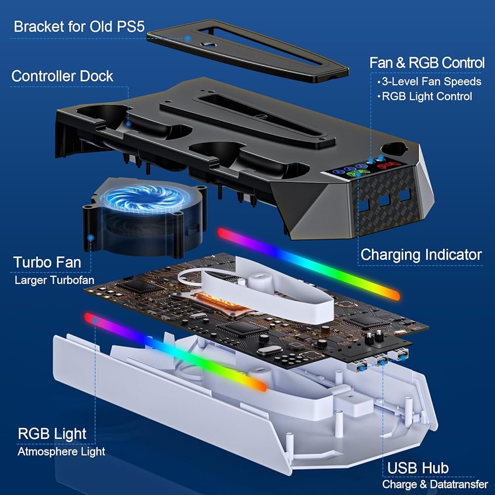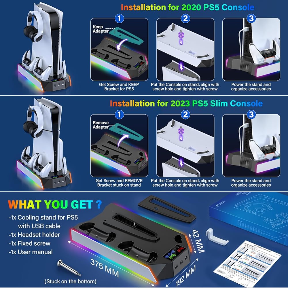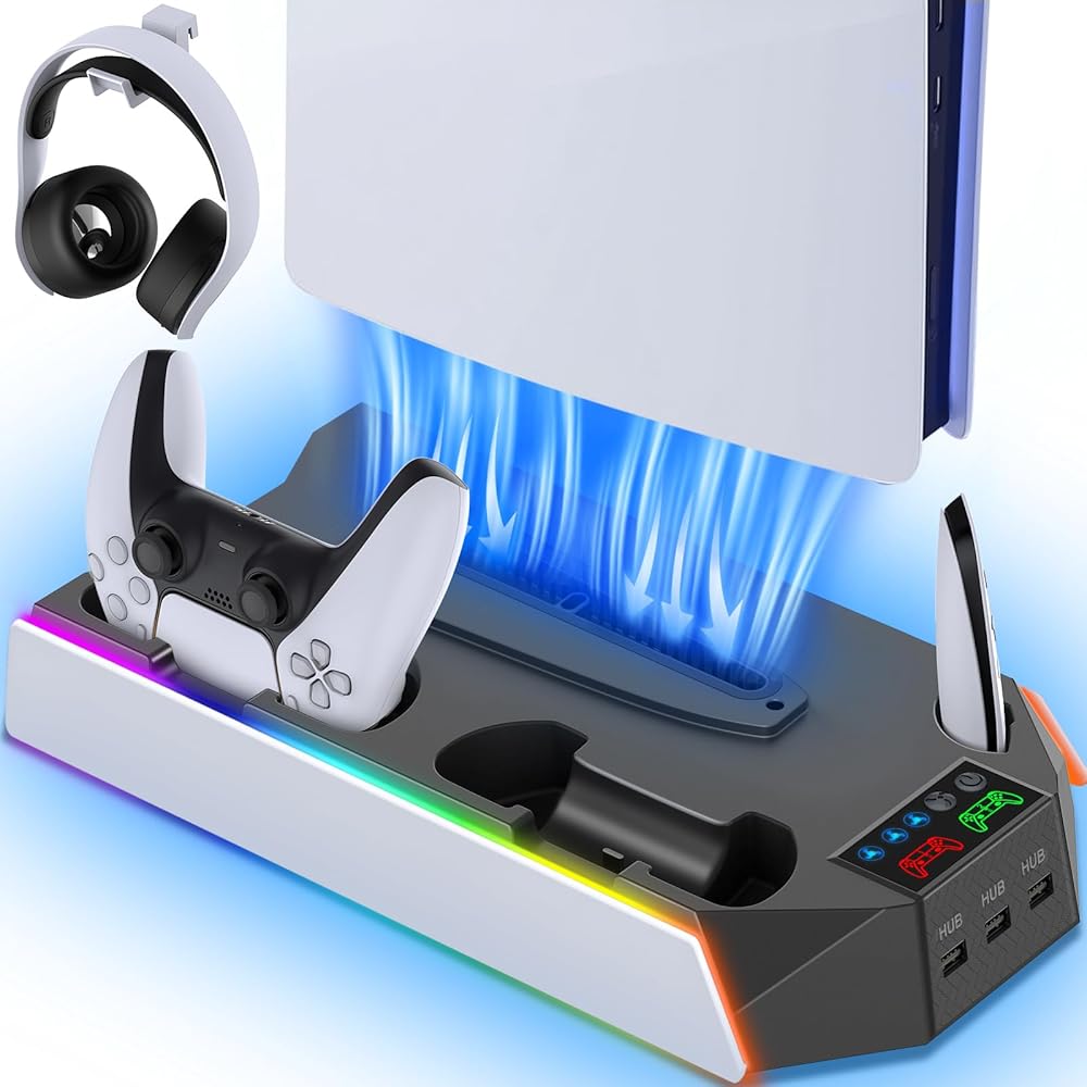 PS5/PS5-플레이스테이션 5 콘솔 디스크/디지털용 슬림 냉각 스테이션 컨트롤러 포함 충전 스테이션 PS5