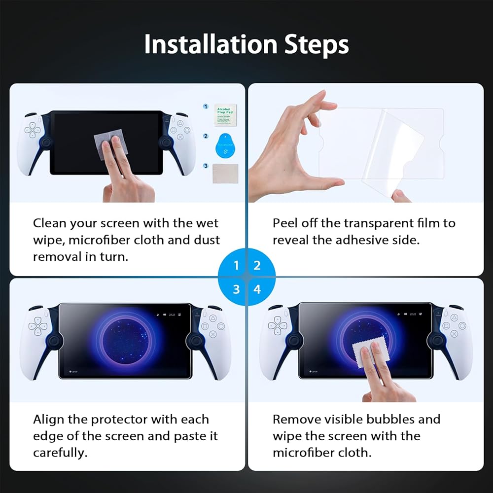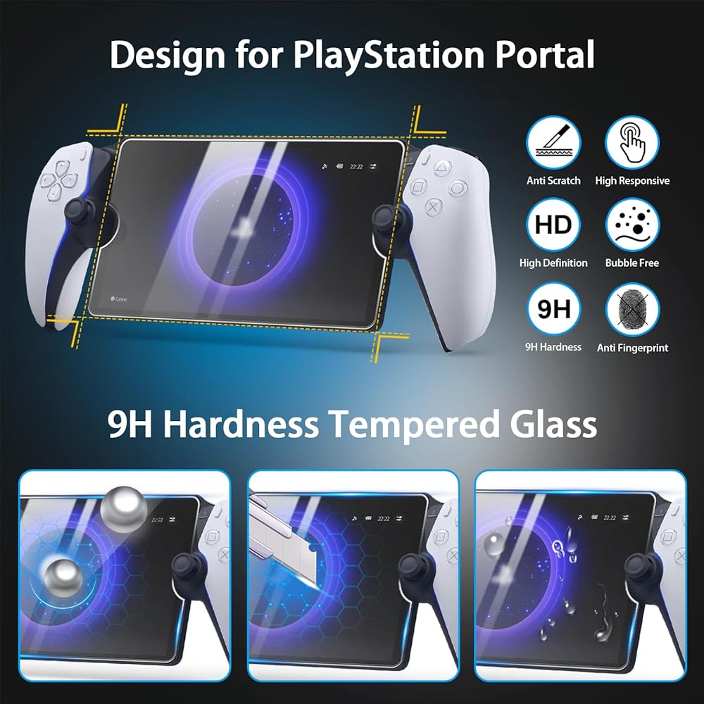 | Whats in the box | 2*9H hardness glass screen protector for PS Portal, 1*installation Kit |