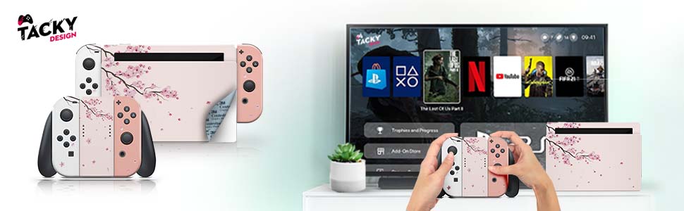 세련된 디자인의 벚꽃 스킨 닌텐도 스위치 스킨 랩 커버 닌텐도 스위치 스티커용 귀여운 핑크 스킨 프리미