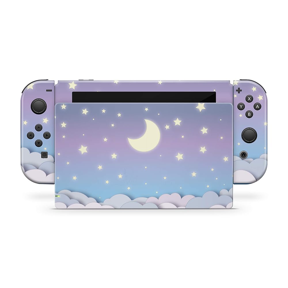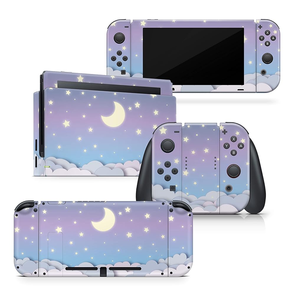 태키 디자인 클라우드 스킨 닌텐도 스위치용 파스텔 퍼플 스카이 문 스킨 프리미엄 3M 비닐 풀 랩 데칼과