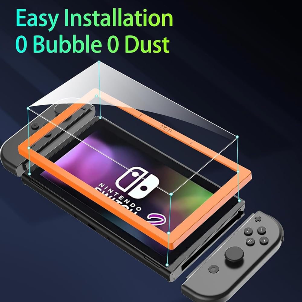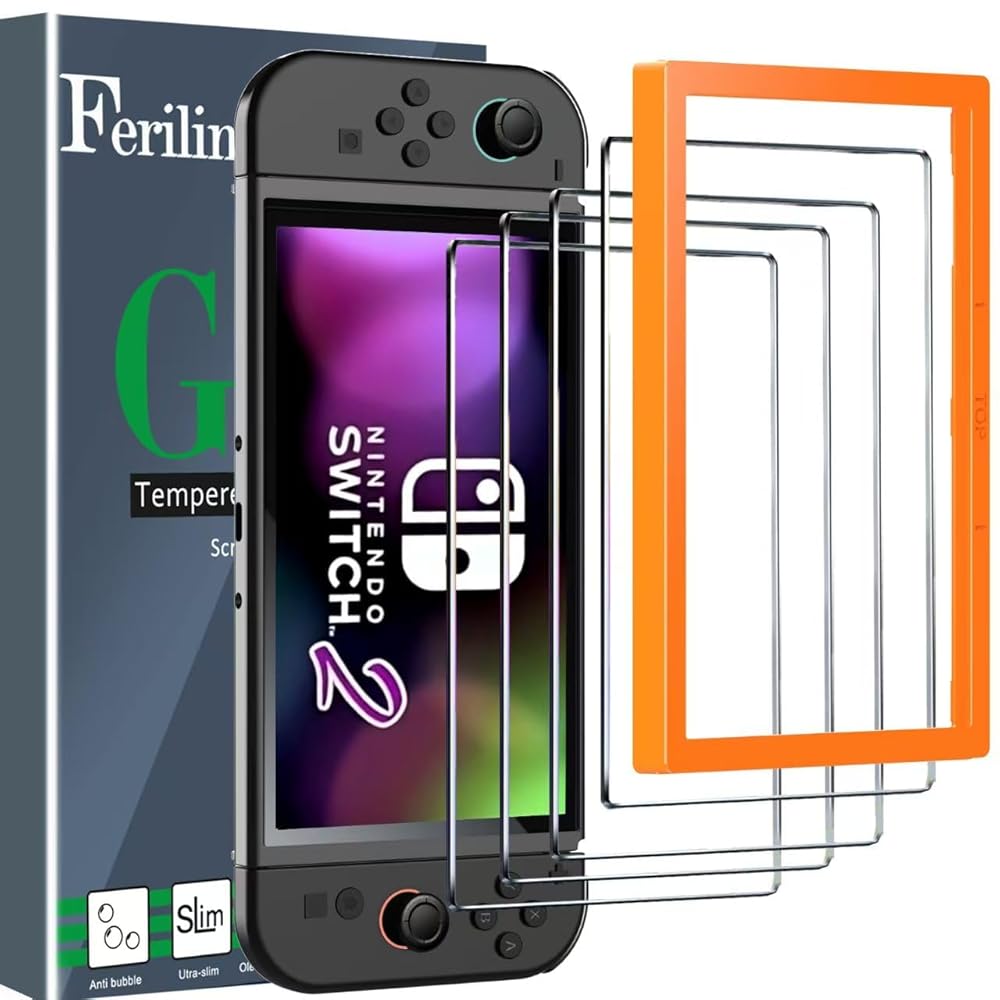 페릴린소 제로 버블 설치 닌텐도 스위치 2 2025용 4팩 강화 유리 스크린 프로텍터 정렬 프레임 여행용 휴대