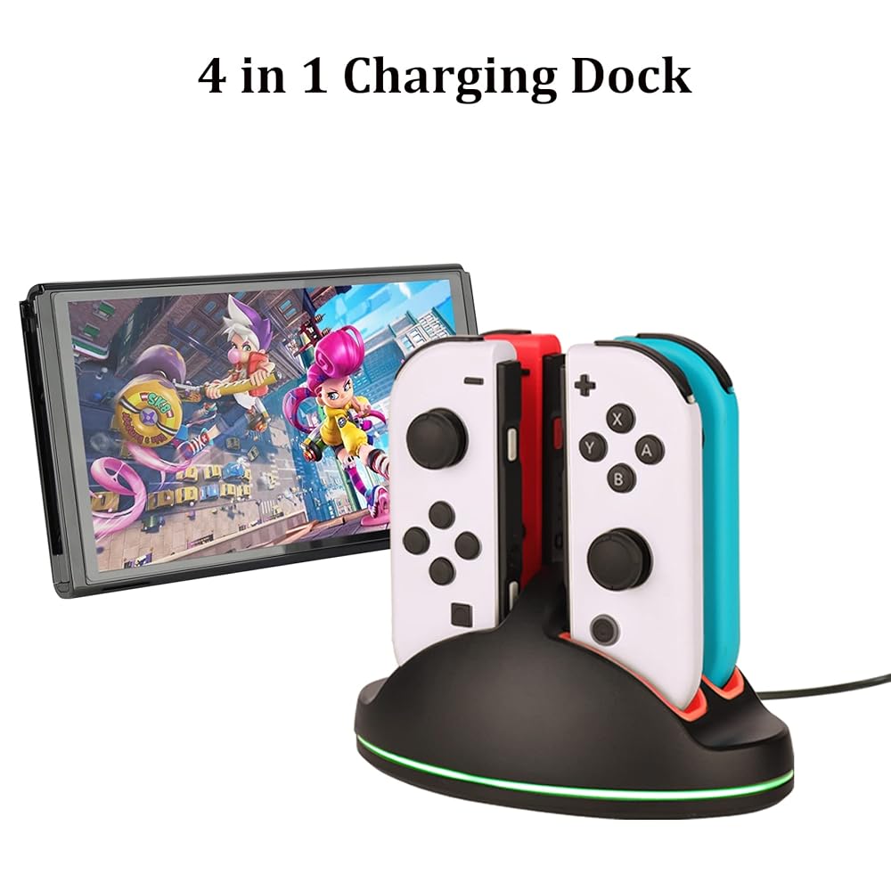 닌텐도 스위치 OLED 모델용 액세서리 번들 팩(2021) 휴대용 케이스가 포함된 패밀리 파티 키트 조이콘 충전