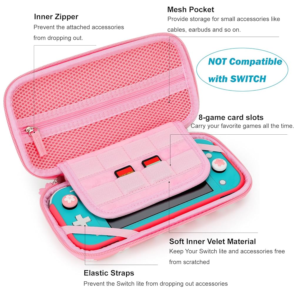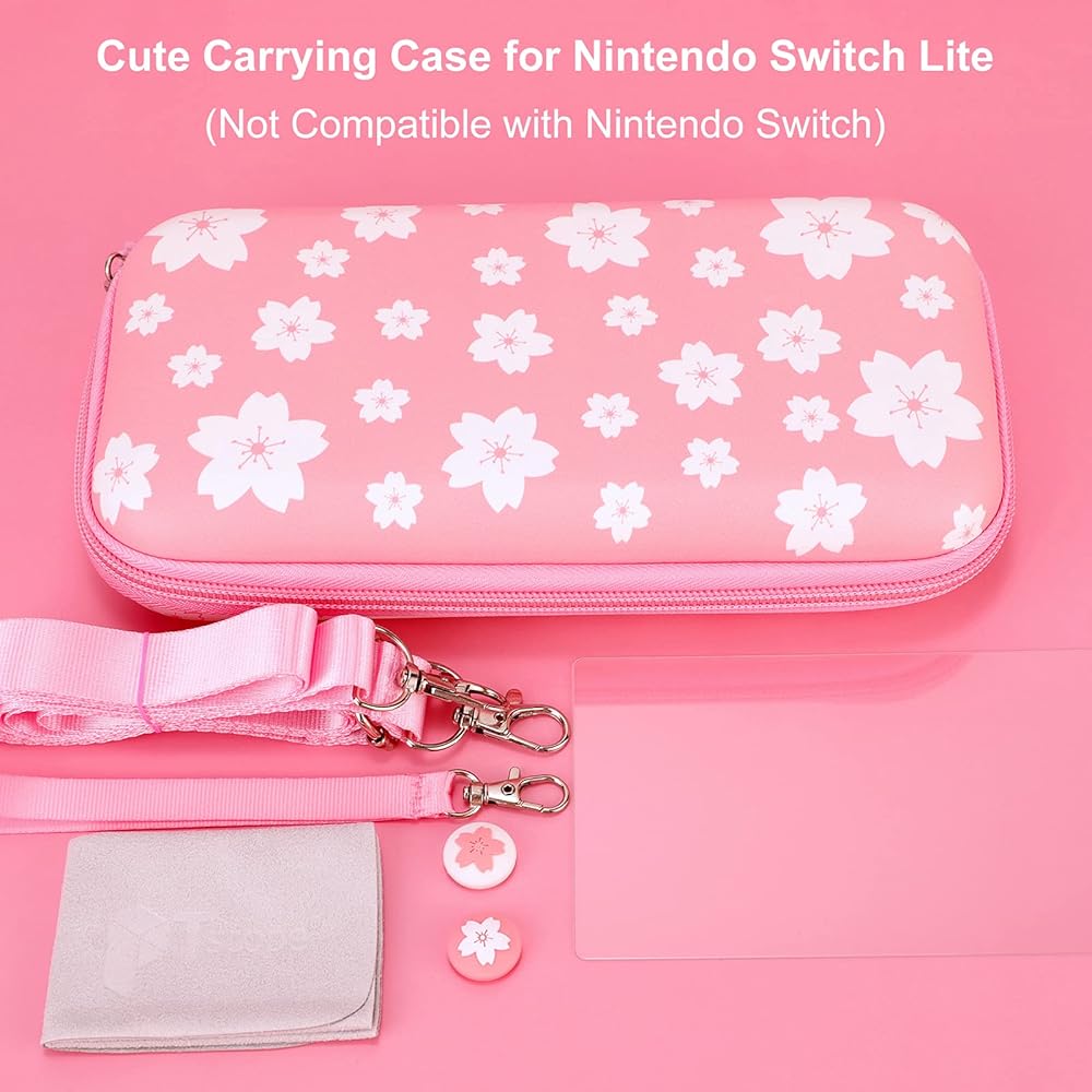 닌텐도 스위치 라이트용 귀여운 휴대용 케이스 핑크 사쿠라 휴대용 하드쉘 소녀 여행용 가방 유리 스크린