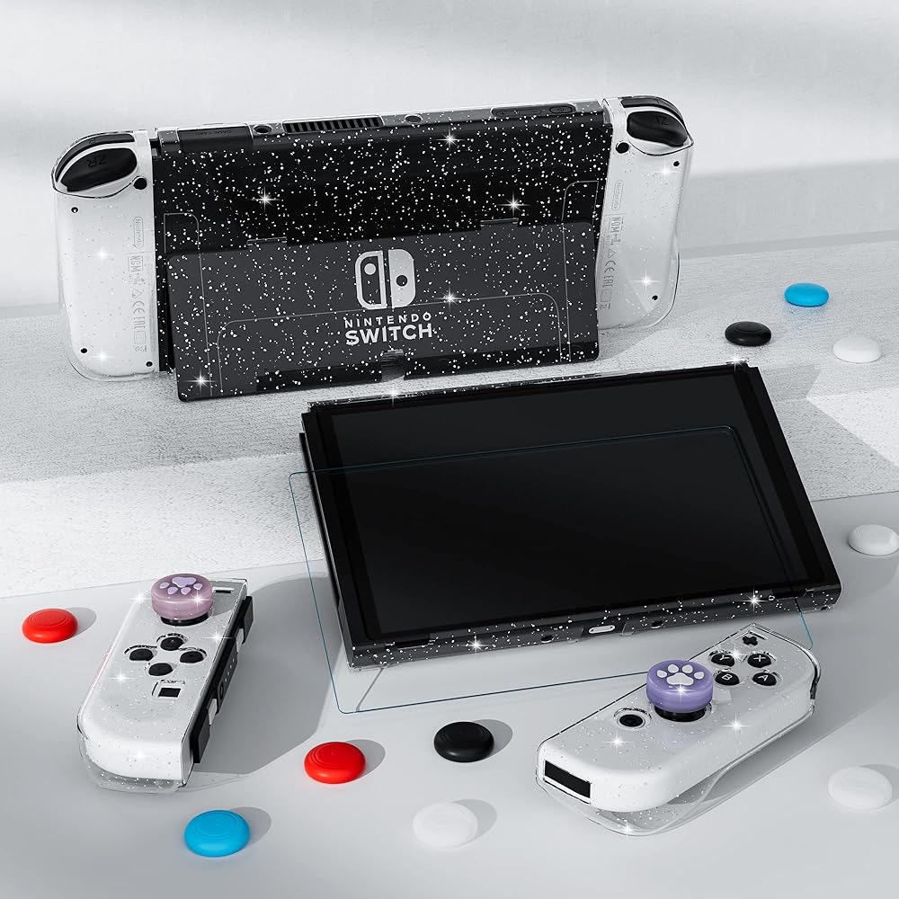 개선된 - 닌텐도 스위치 OLED 2021용 FANPL 스파클 케이스 세트 스위치 OLED 콘솔용 하드 PC 커버 및 소프
