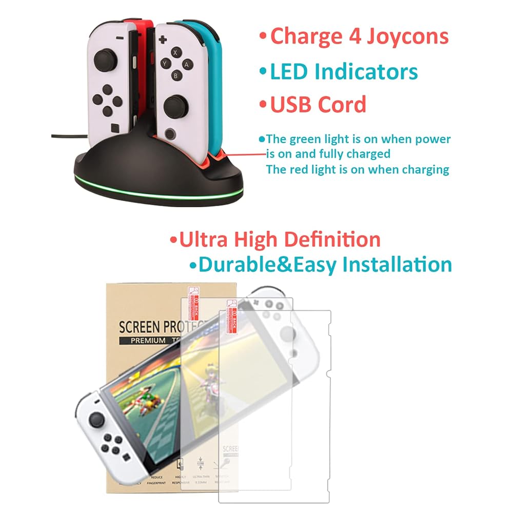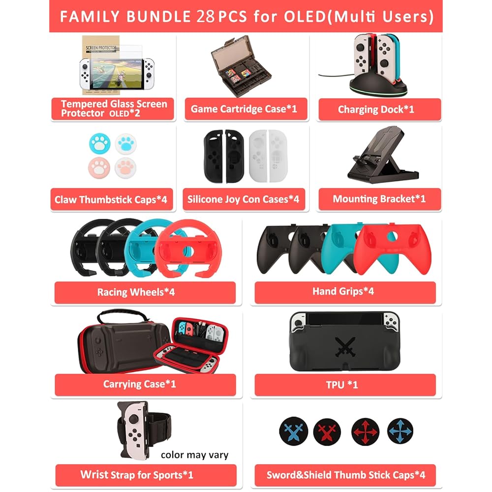 스위치 OLED 액세서리 - 닌텐도 스위치 OLED 에디션용 28 in 1 패밀리 액세서리 번들 키트 휴대용 케이스