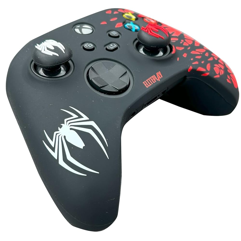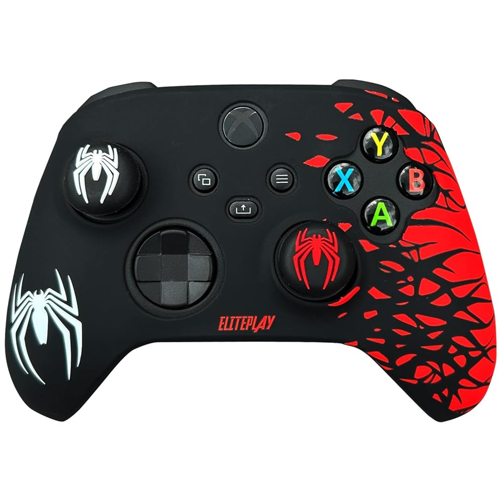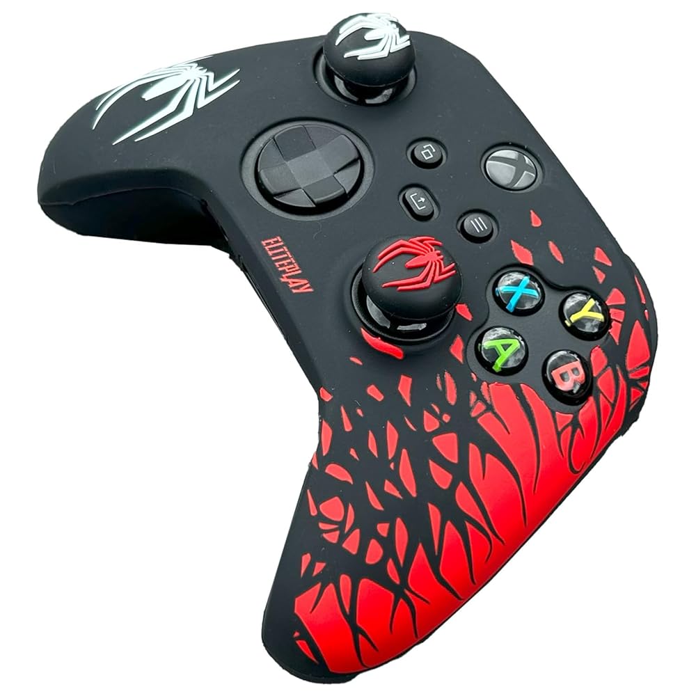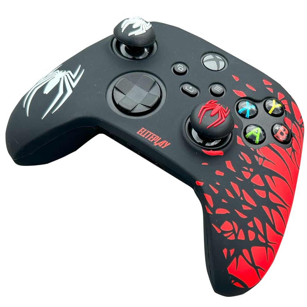 엘리트플레이 블랙 앤 레드 스파이더 미끄럼 방지 실리콘 커버 스킨 Xbox Series X Series S 및 Xbox One