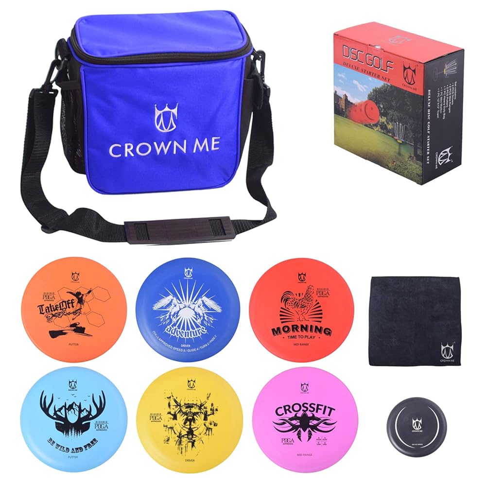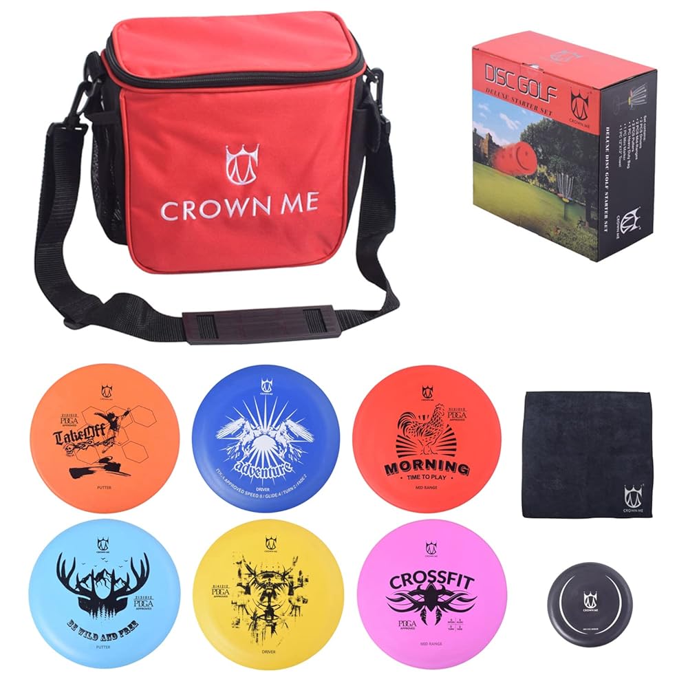 크라운 미 디스크 골프 스타터 세트 디스크 6개 마커 1개 수건 1개 및 스타터 디스크 골프백 페어웨이 드라
