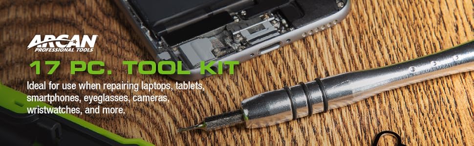 | Included Components | Arcan Cellphone Tablet Computer Tool Kit, 17-Piece (ATS17PC) |