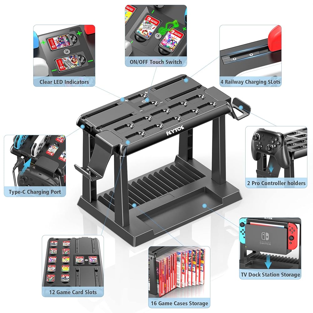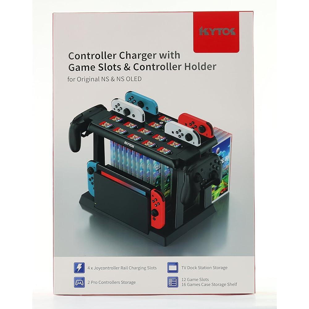 컨트롤러 충전기가 있는 Kytok 스위치 게임 정리함 닌텐도 스위치 및 OLED 조이콘용 충전 도크 게임용 저장