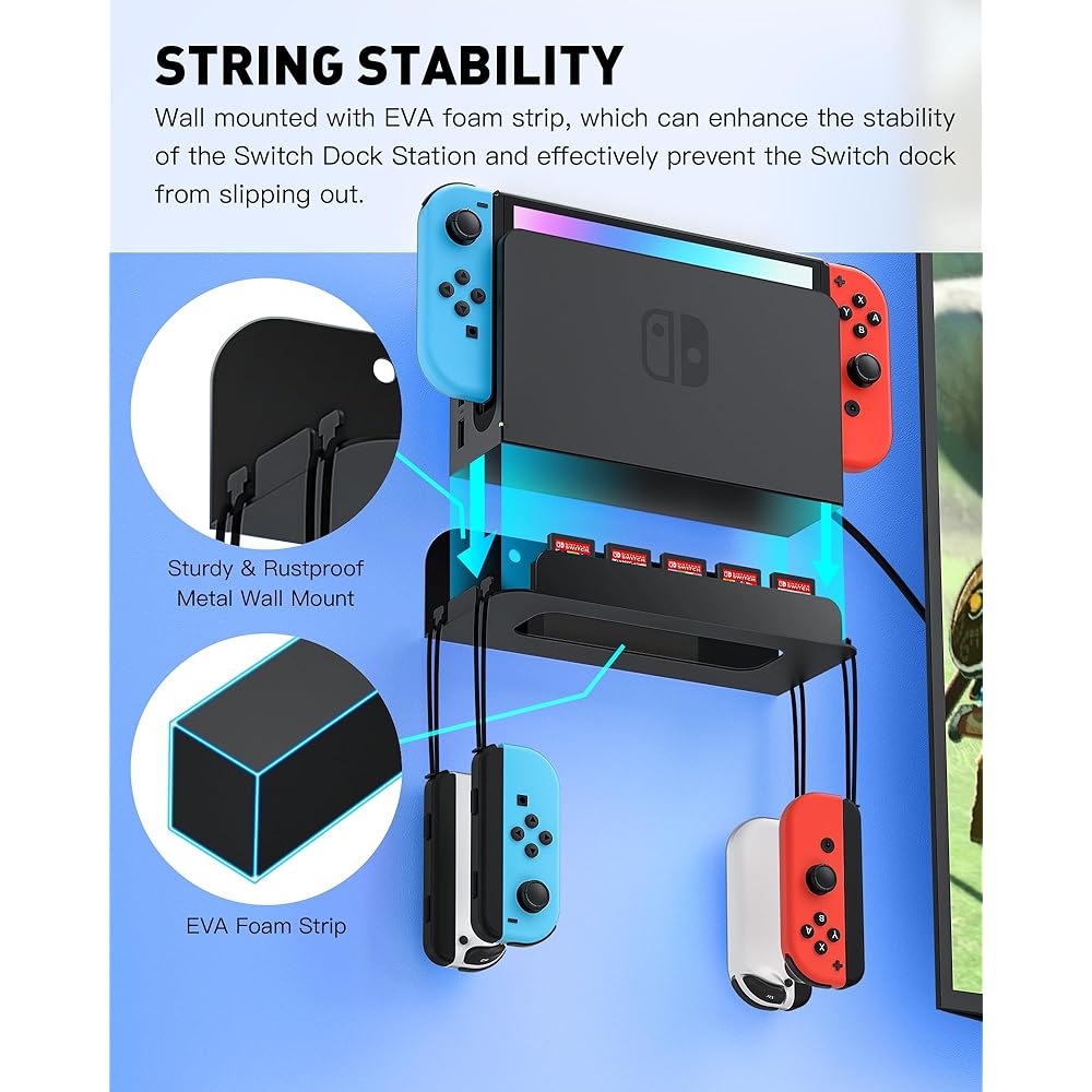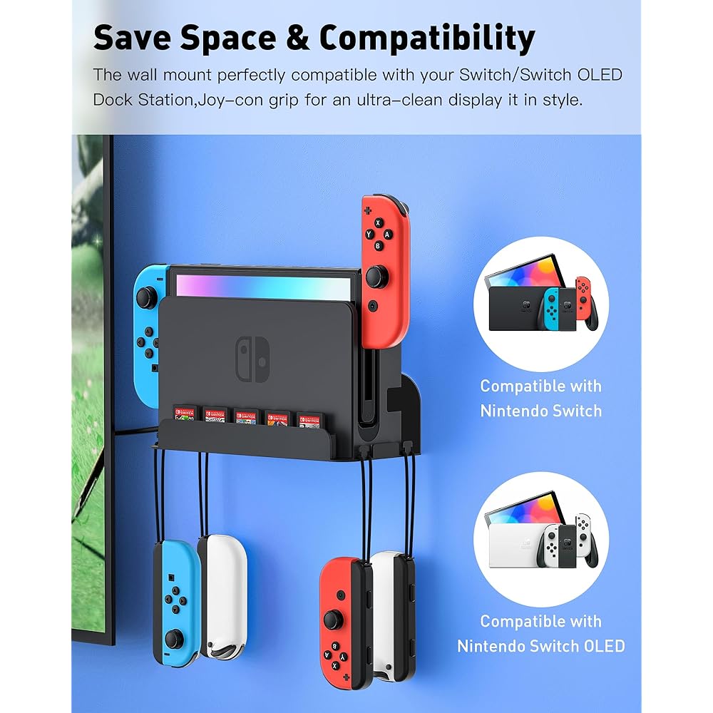 닌텐도 스위치 및 스위치 OLED용 ZAONool 벽걸이 5개의 게임 카드 홀더와 4개의 조이 콘 브래킷이 있는