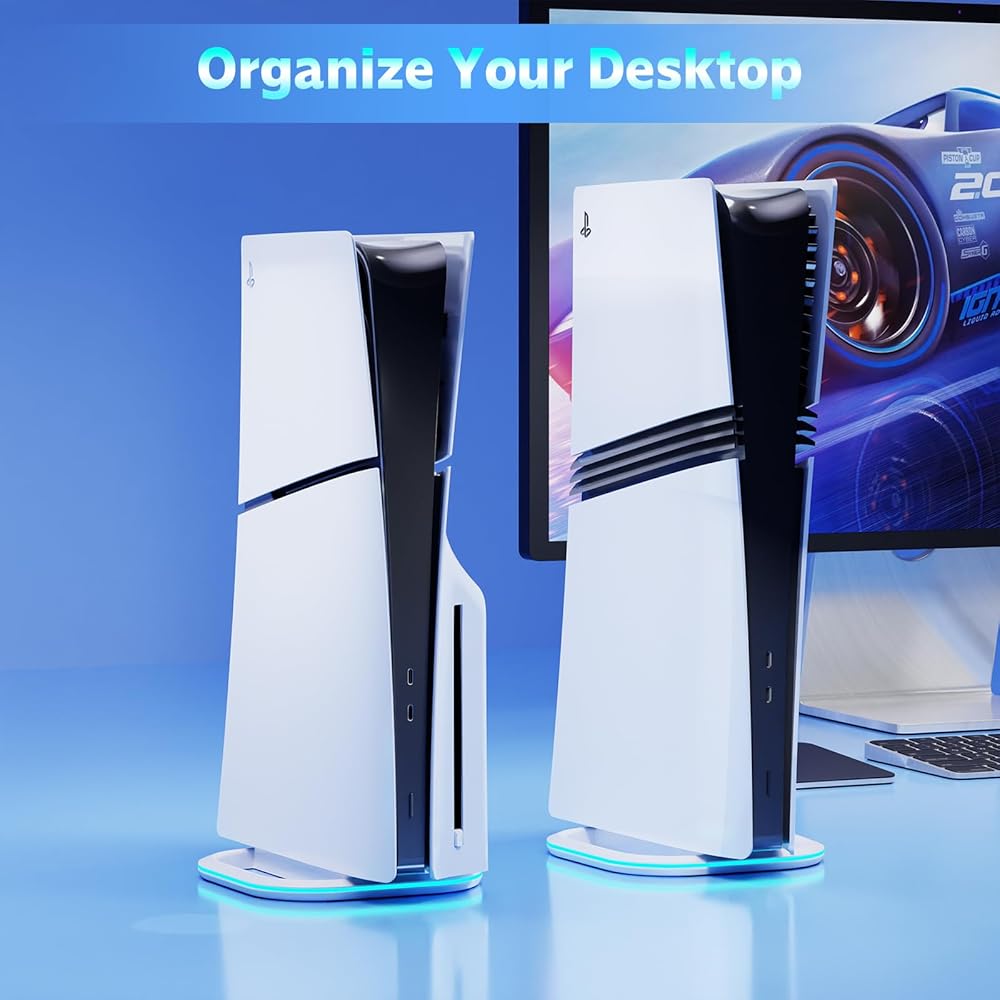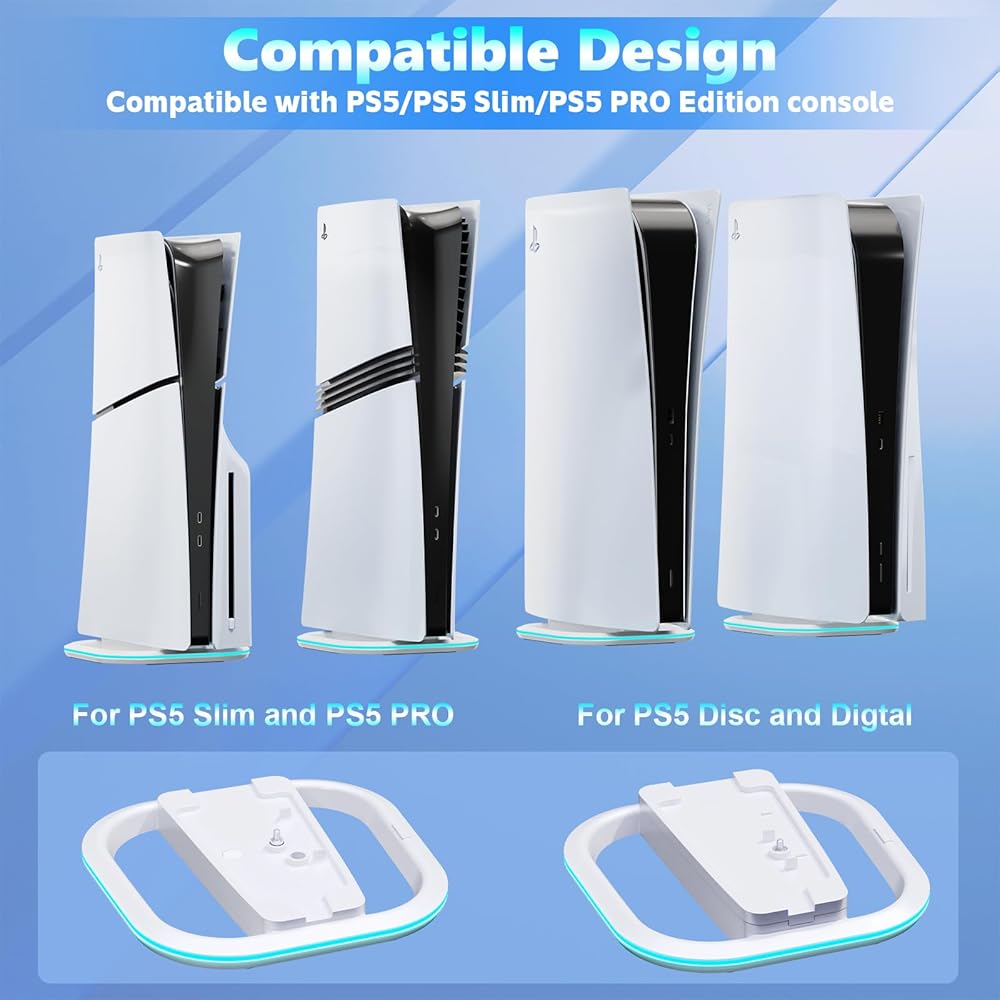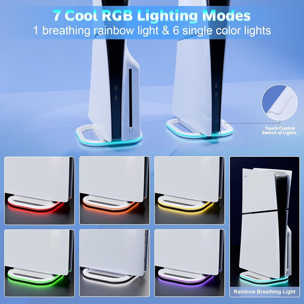PS5/PS5 슬림/플레이스테이션 프로 콘솔용 HONCAM 수직 스탠드 7개의 RGB 조명과 나사가 있는 PlayStation
