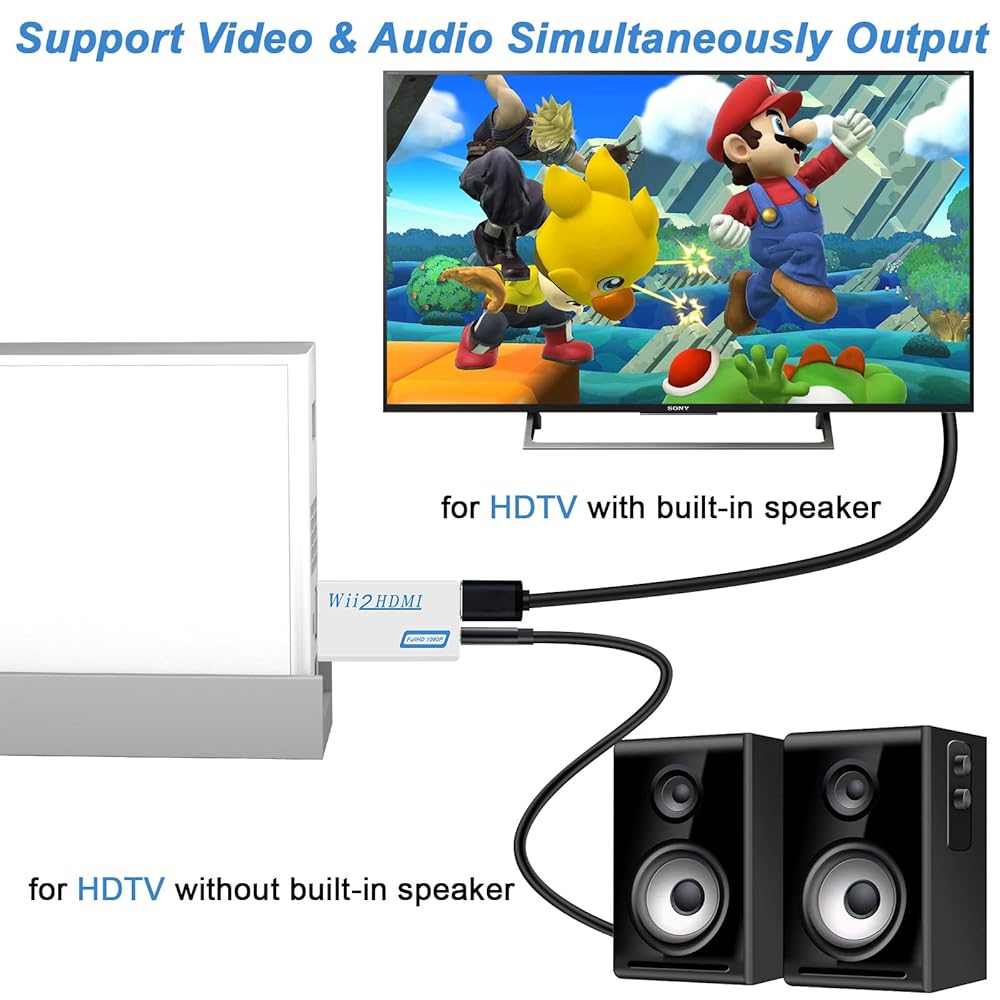 Herfair Wii에서 HDMI 어댑터 2팩 1080P 비디오 출력 변환기 닌텐도 Wii/Wii U 콘솔용 3.5mm 오디오 포트