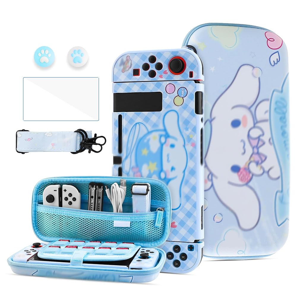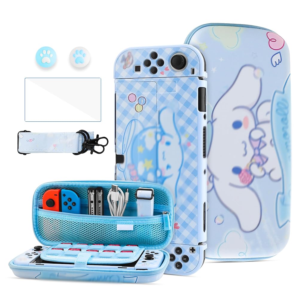 하이퍼케이스 귀여운 스위치 휴대용 케이스 세트 닌텐도 스위치 콘솔용 블루독 여행 액세서리 보관 PC 보호