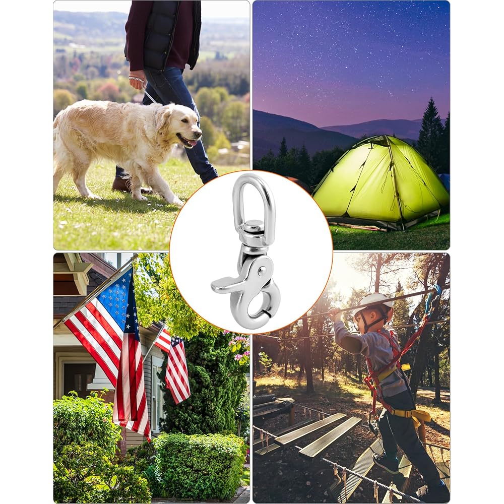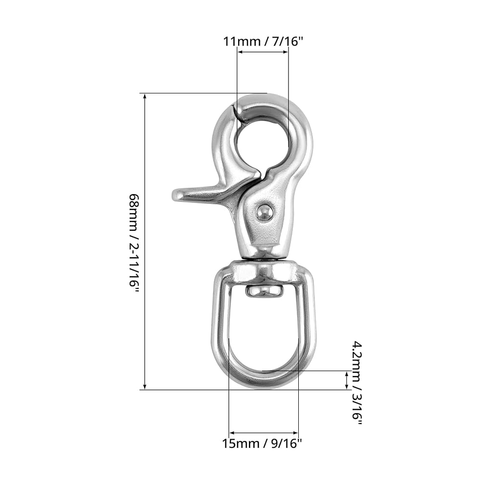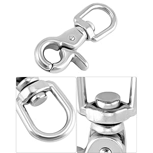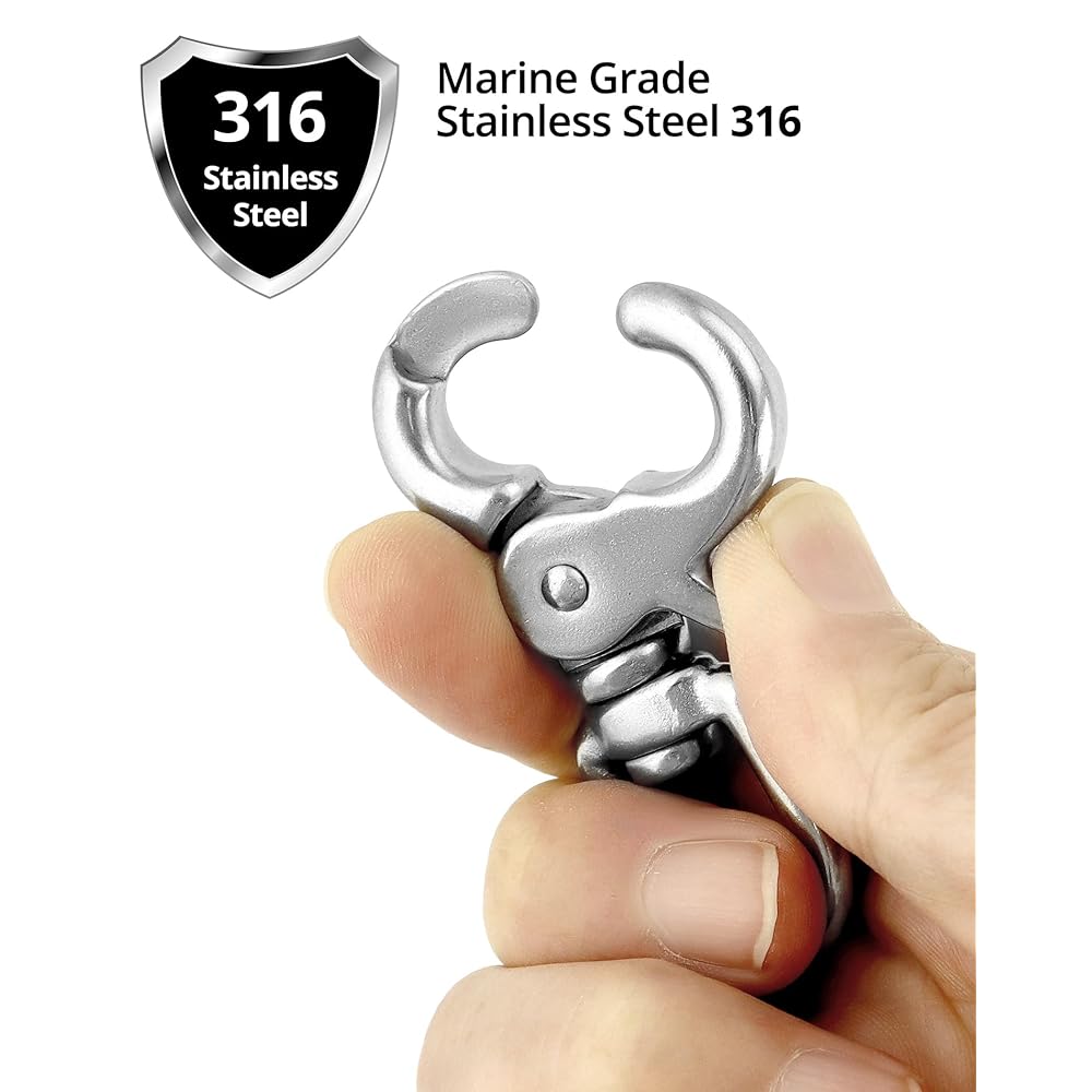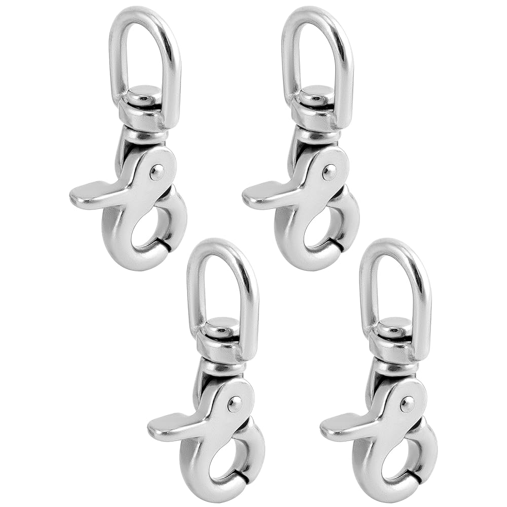 QWORK 회전 트리거 스냅 훅 4팩 2.56인치 마린 등급 스테인리스 스틸 316 회전 트리거 클립 후크 130파운드