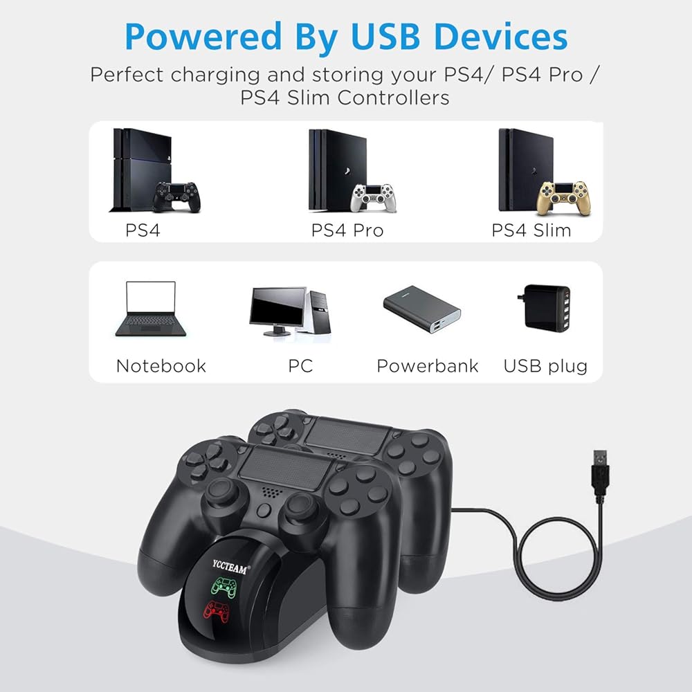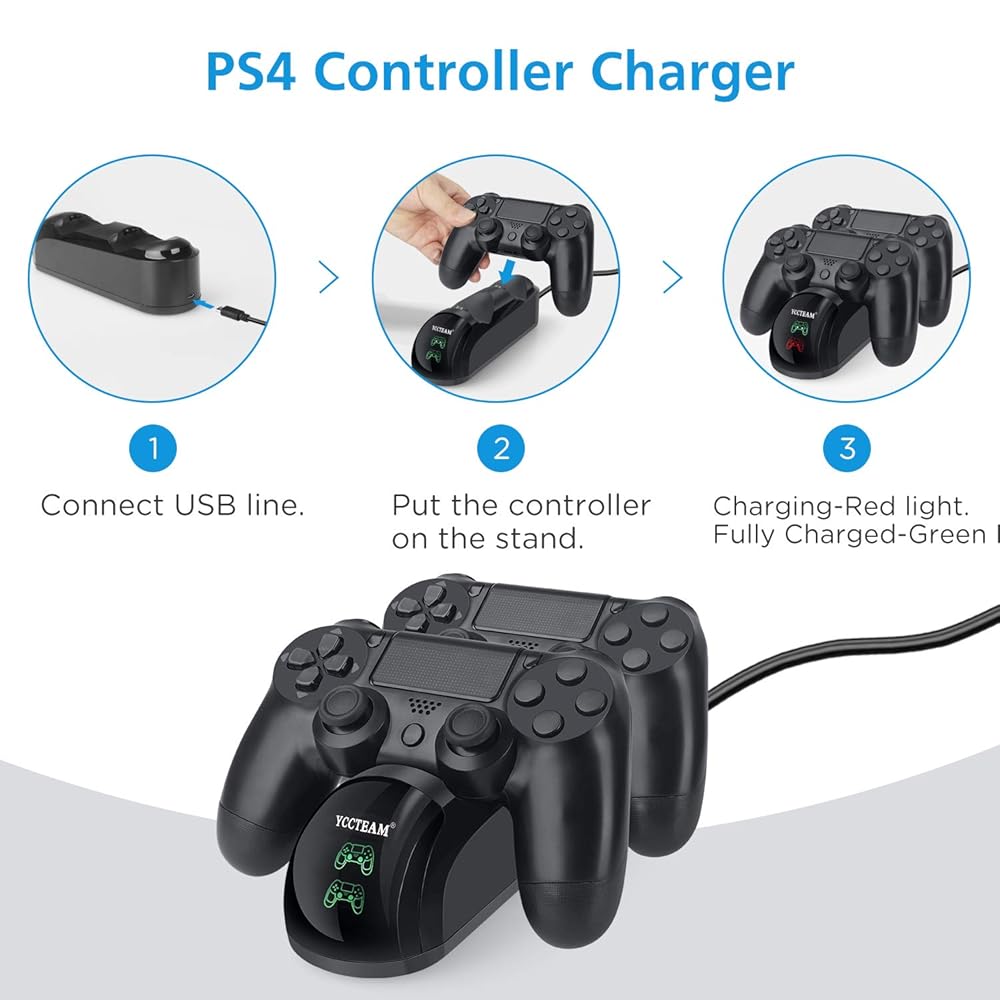 PS4 컨트롤러 충전기 업그레이드된 PS4/PS4 슬림/PS4 프로 컨트롤러용 고속 충전 포트 도킹 스테이션 스탠