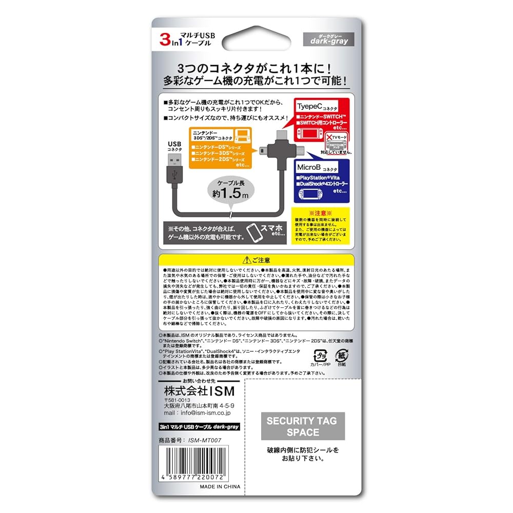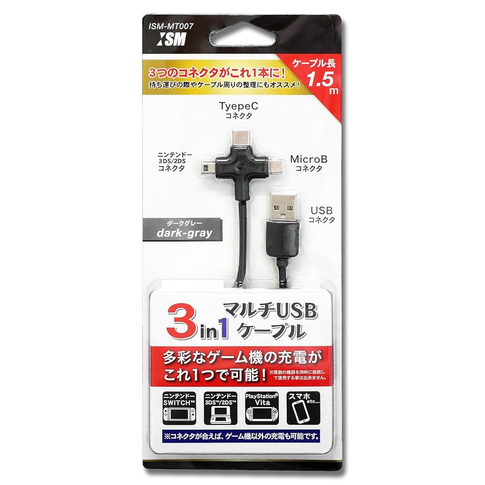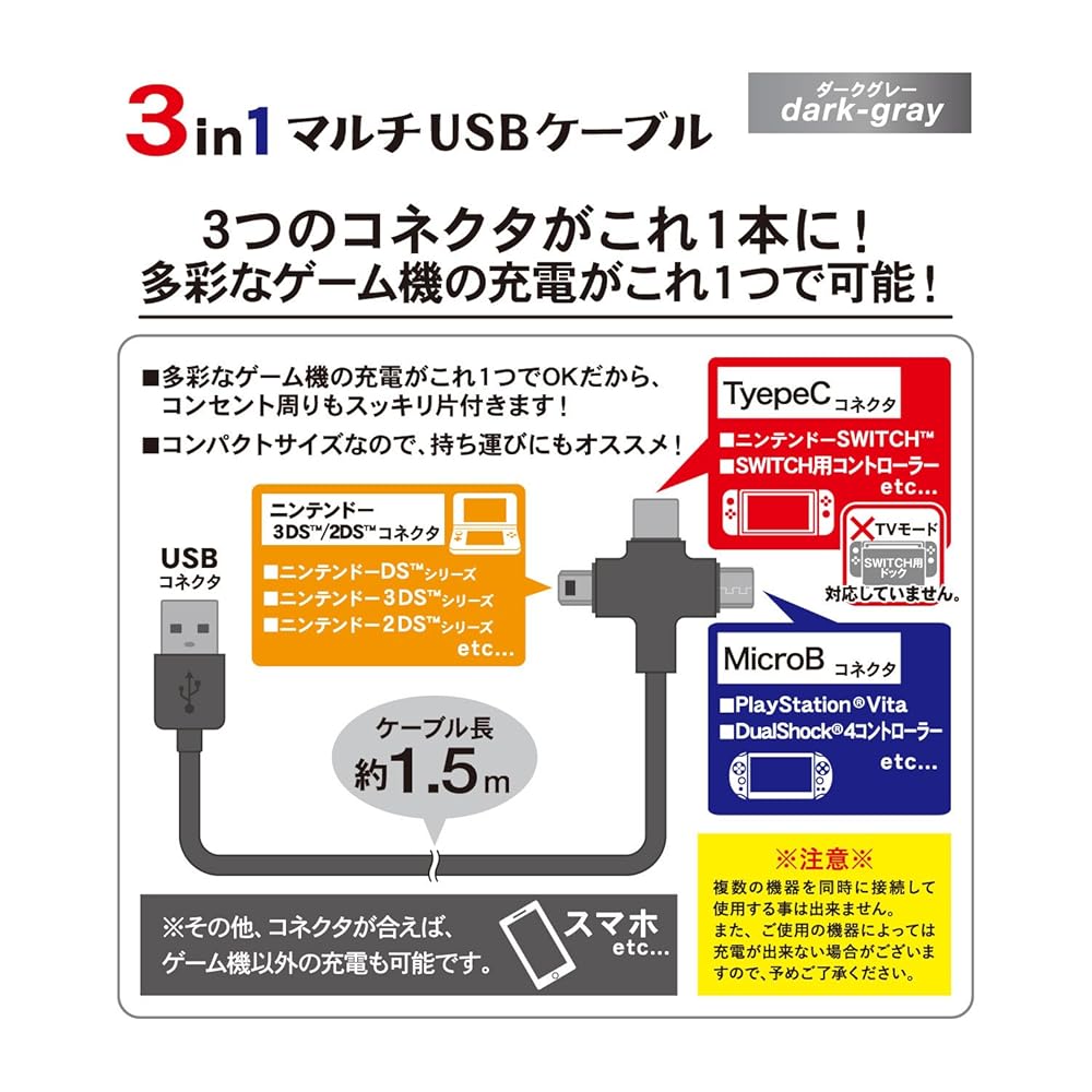 이즘 다기종 지원 (3WAY) USB 케이블 3 in 1 멀티 USB 케이블 - Switch PS Vita PS4 3DS 2DS-
