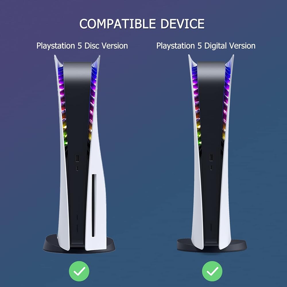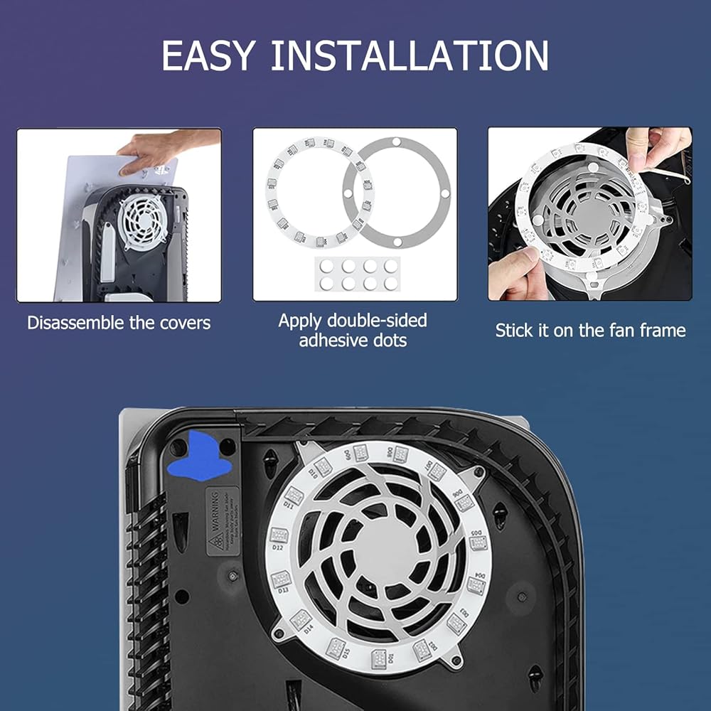 | Special Feature | Design for P5 console only: this LED strip light is specially designed for console, the ring design makes it available to paste directly to the PS5 cooling fan frame, the same color as the fan, integrated with the console. Compatible with PS5 Digital and Disc Edition. (Note: Please read the instructions before use, and test the product before installation) |