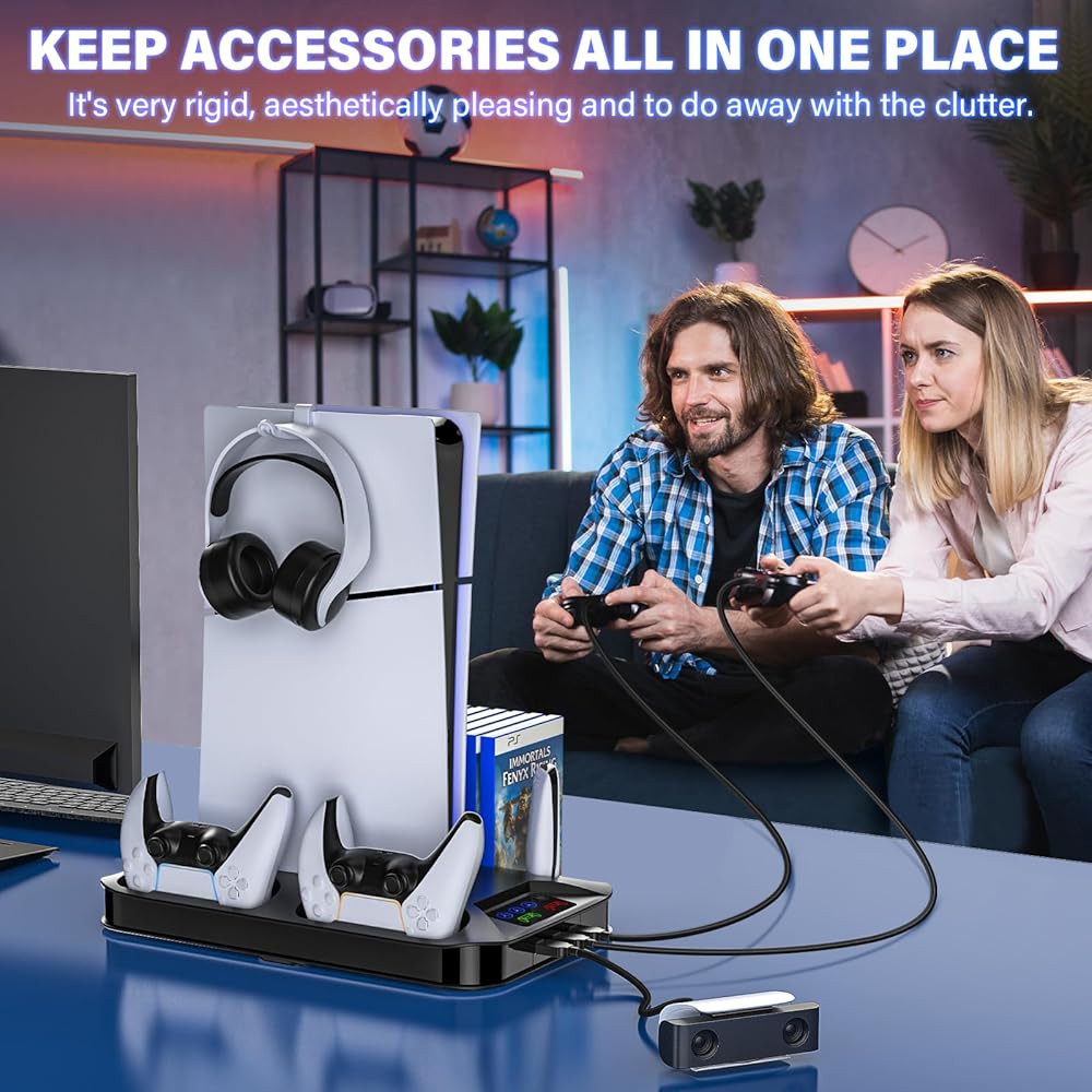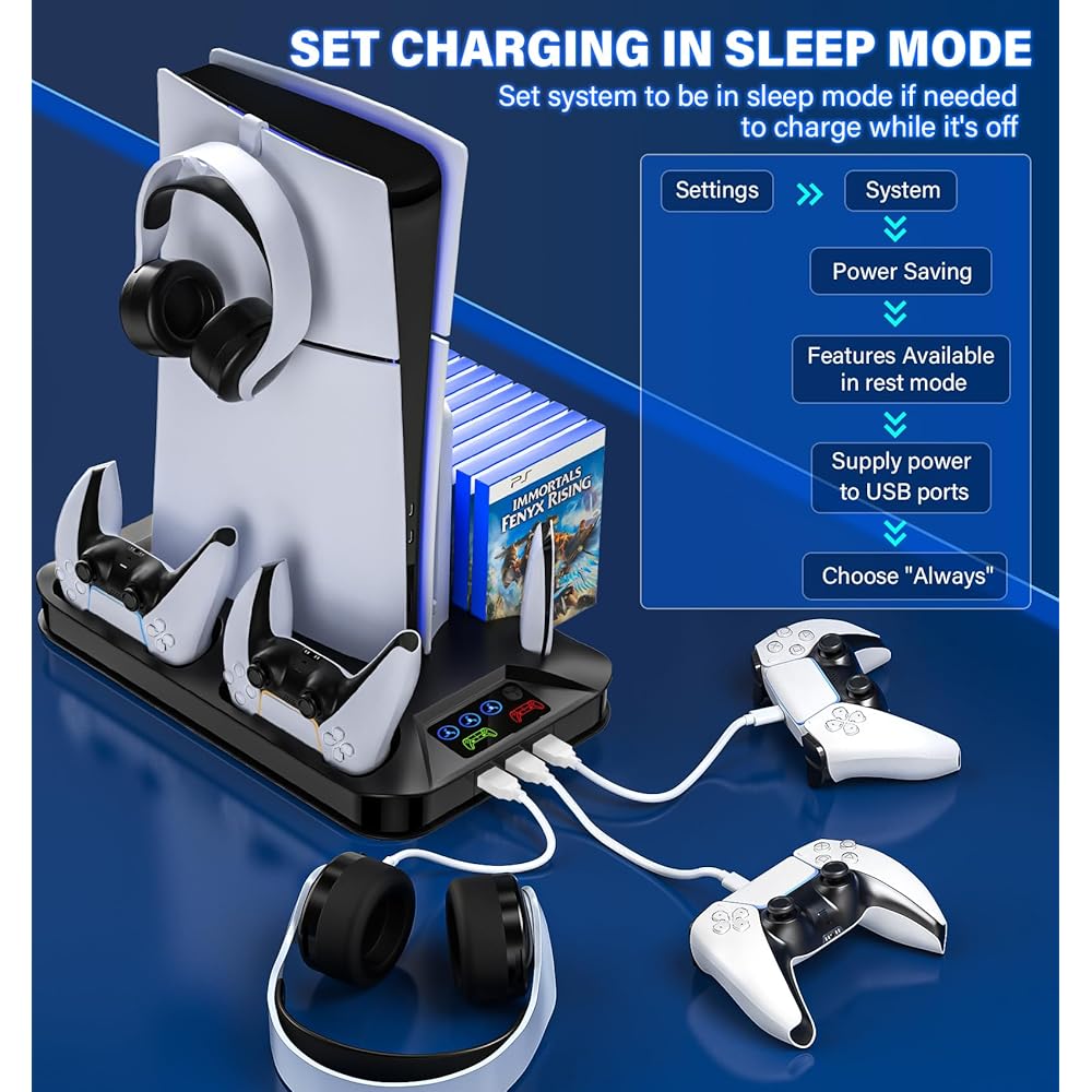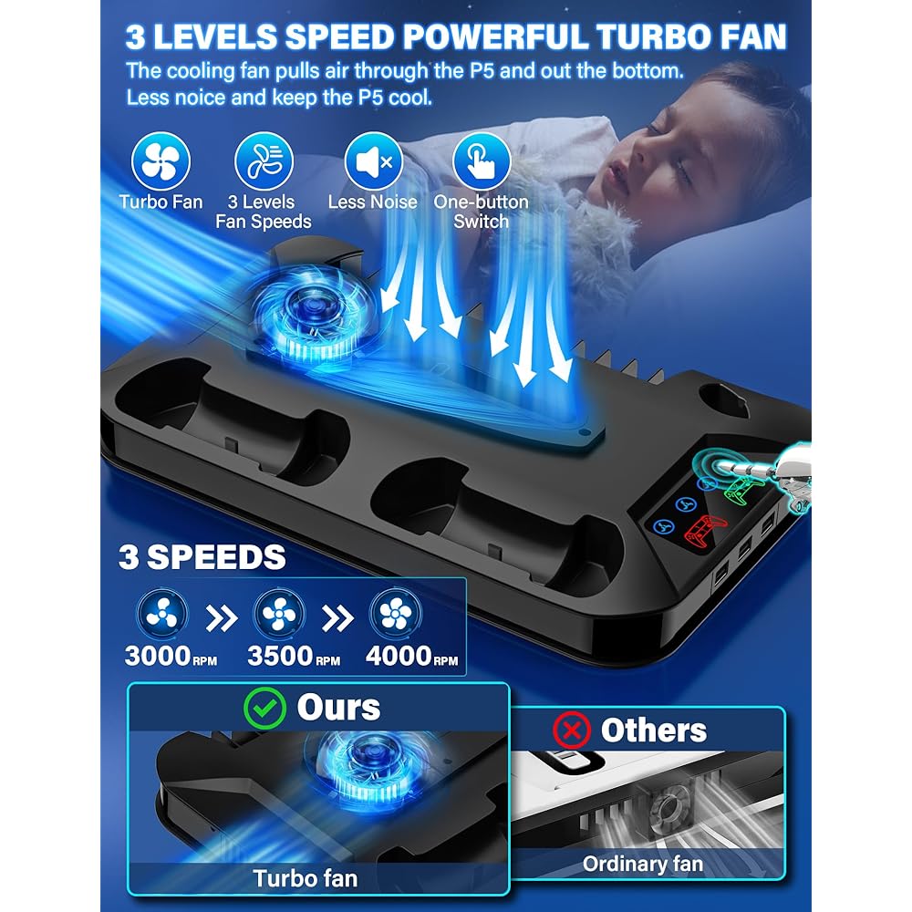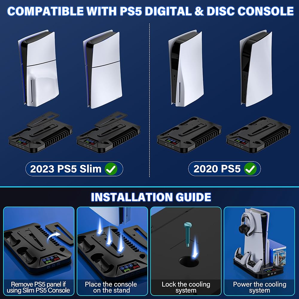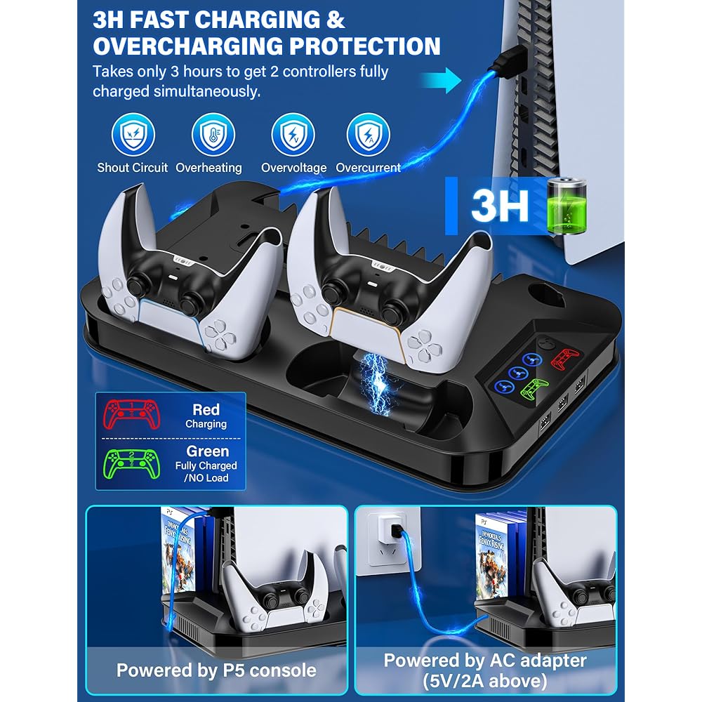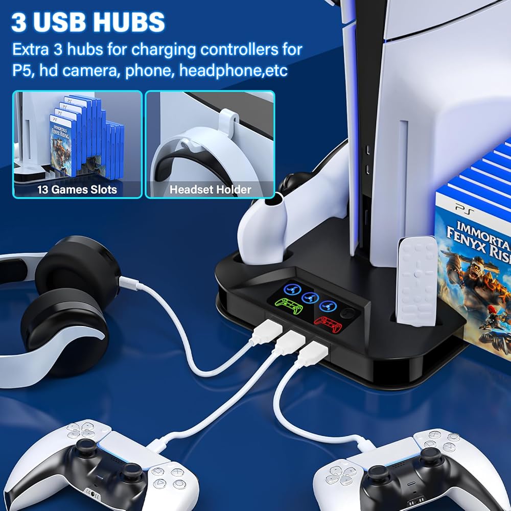 PS5 / PS5 슬림 냉각 스테이션 PlayStation 5 콘솔 디스크/디지털용 컨트롤러 충전 스테이션 3개의 USB