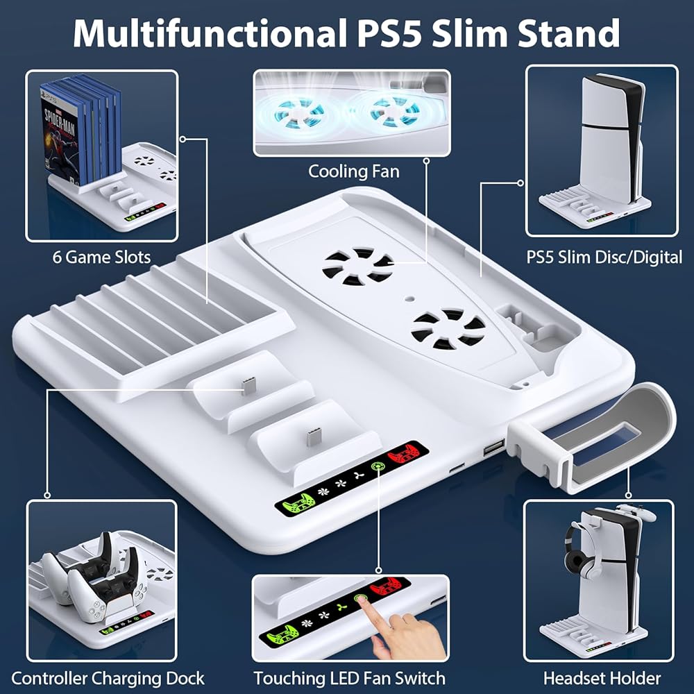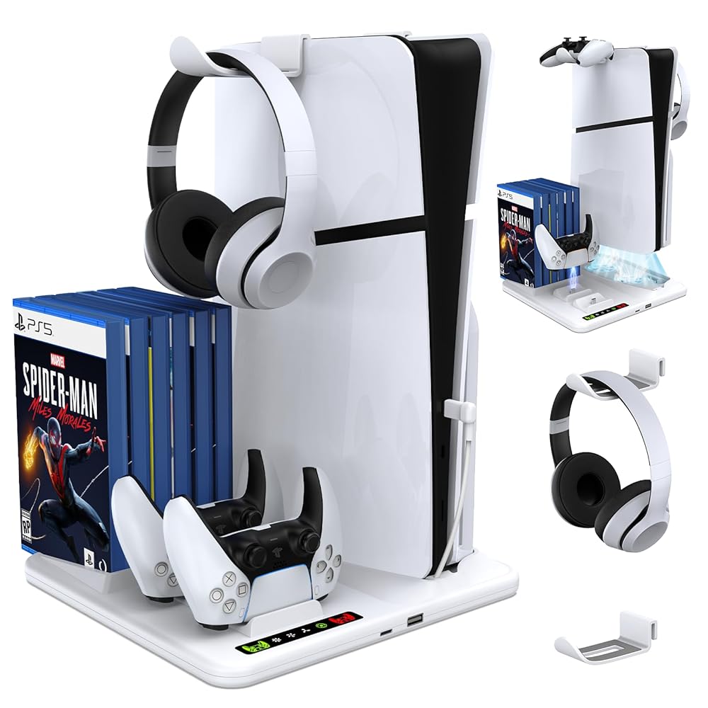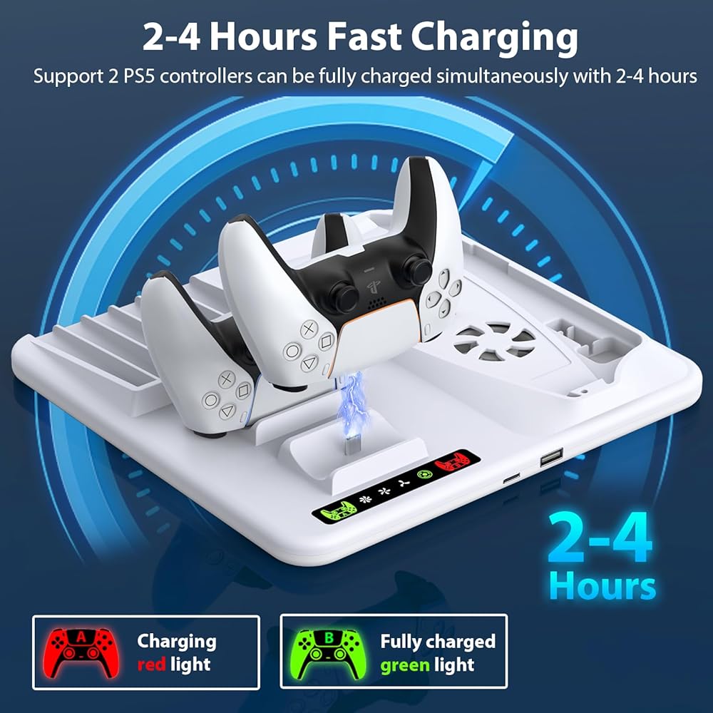 플레이스테이션 5 슬림 콘솔용 듀얼 컨트롤러 충전 스테이션이 있는 PS5 슬림 냉각 스테이션 PS5 슬림