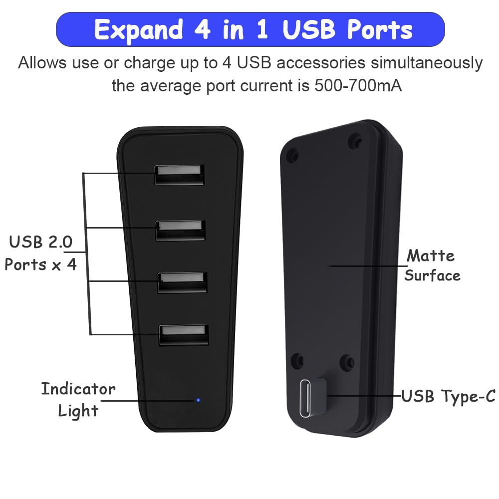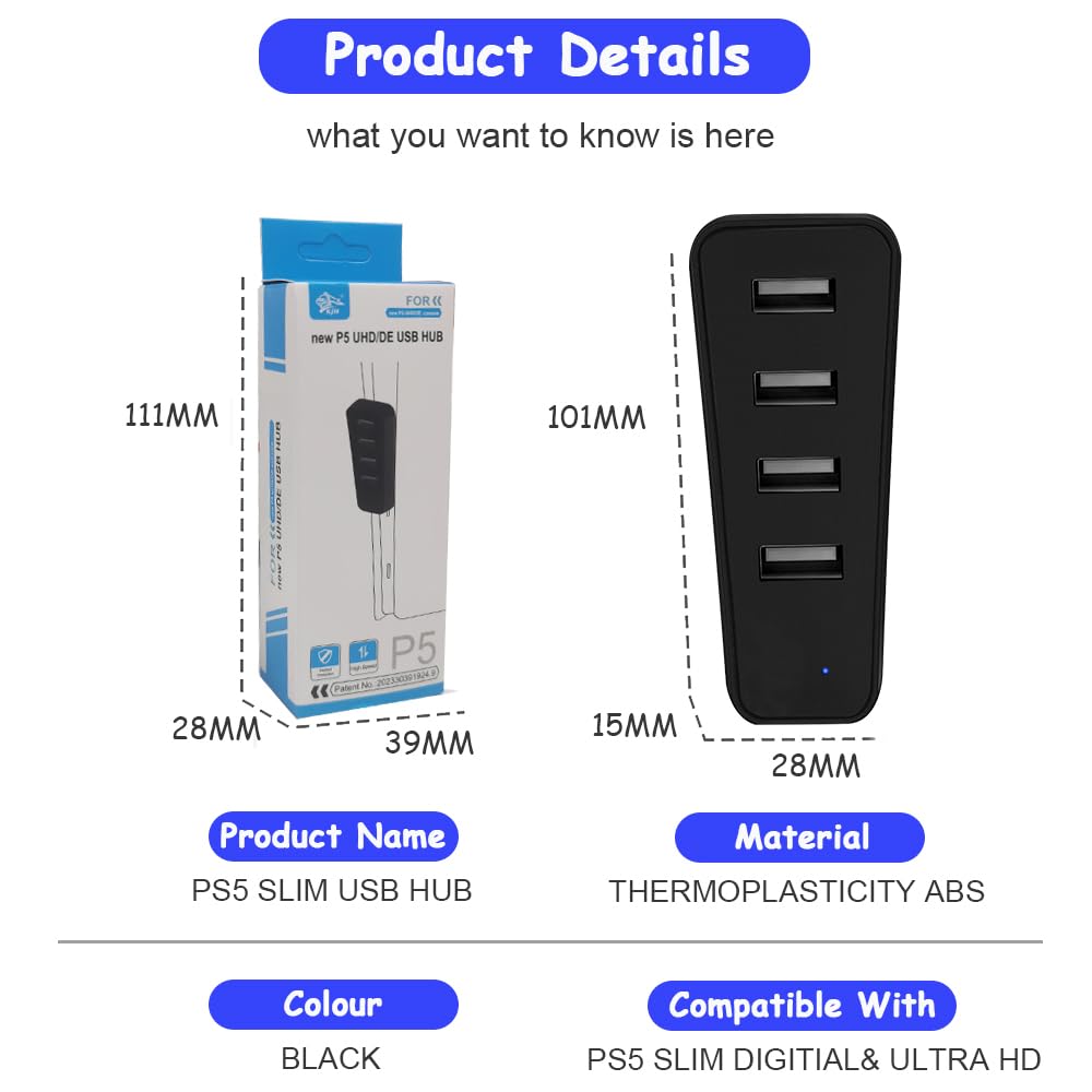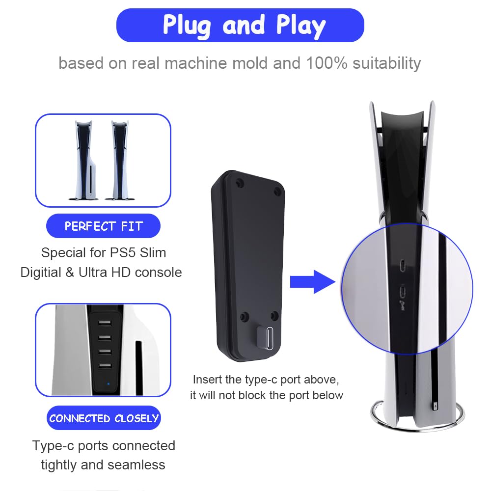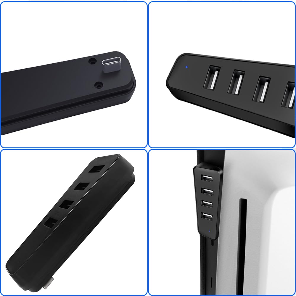 PS5 슬림/PS5 프로 액세서리용 코이코 USB 허브 플레이스테이션 5 슬림/프로 게임 콘솔과 호환되는 4개의