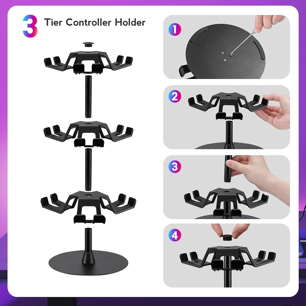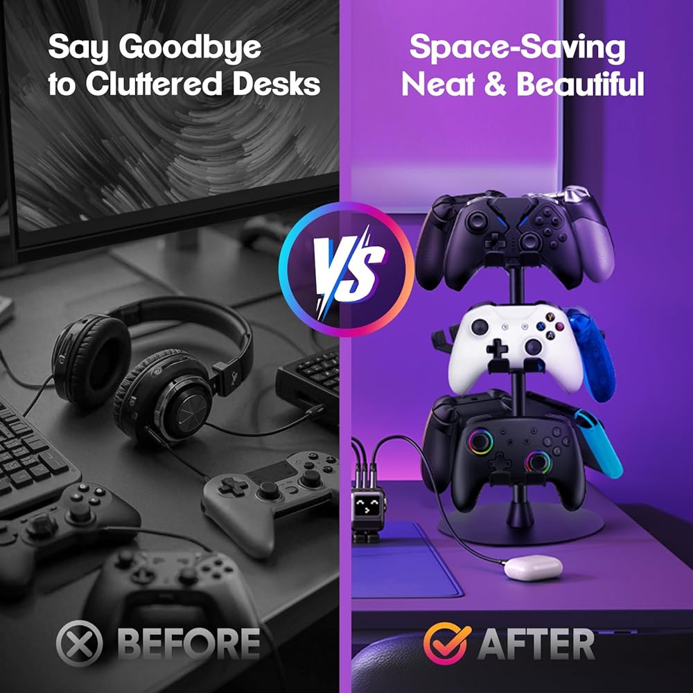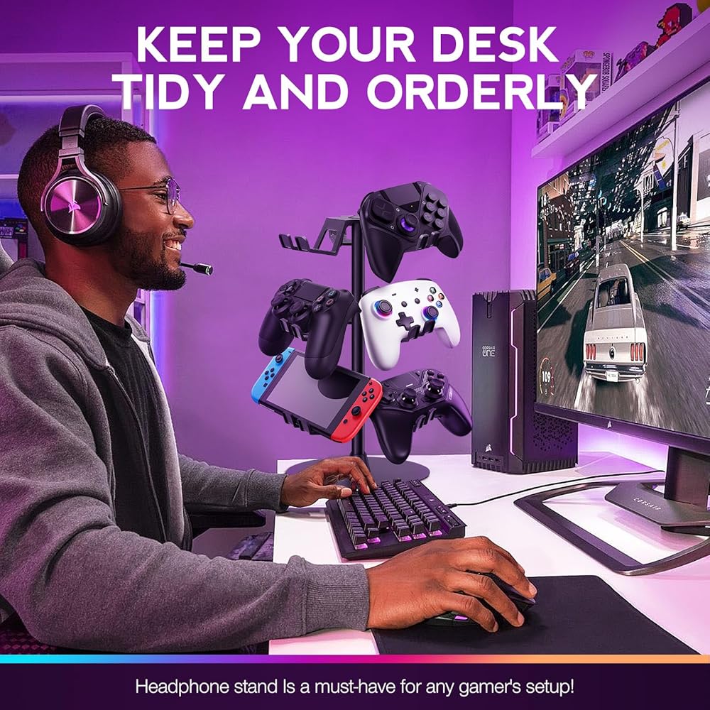 하티산 헤드셋 스탠드 3단 회전식 Xbox PS5 PS4 스위치용 데스크톱 컨트롤러 홀더 8팩 컨트롤러용 게임